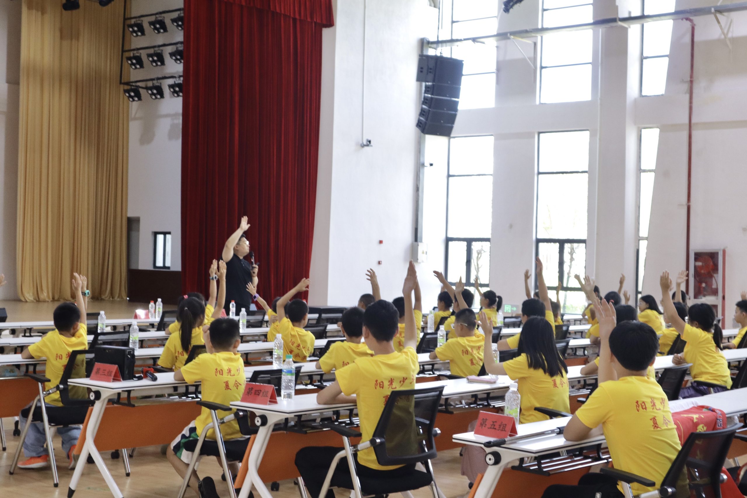 随后,江西省家庭教育学会讲师王铜麟以《从”红船”到”井冈山”——信仰的力量》为题,为孩子们带来首场爱国主义教育讲座。他通过鲜活的历史故事、生动的互动问答,将抽象的革命精神转化为可感知的成长养分:”你们现在吃的苦、遇到的挑战,和红军战士爬雪山、过草地比起来算什么?但正是这些’小坚持’,终将汇聚成’大信仰’。”台下孩子们时而专注记录,时而举手提问,眼里满是对历史的敬畏与好奇。