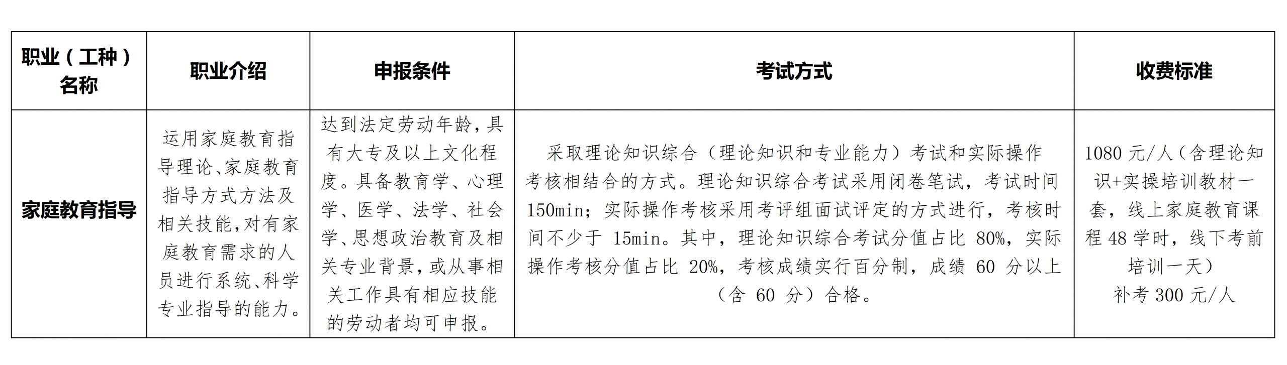 二、【家庭教育指导】专项职业能力考核项目一览表