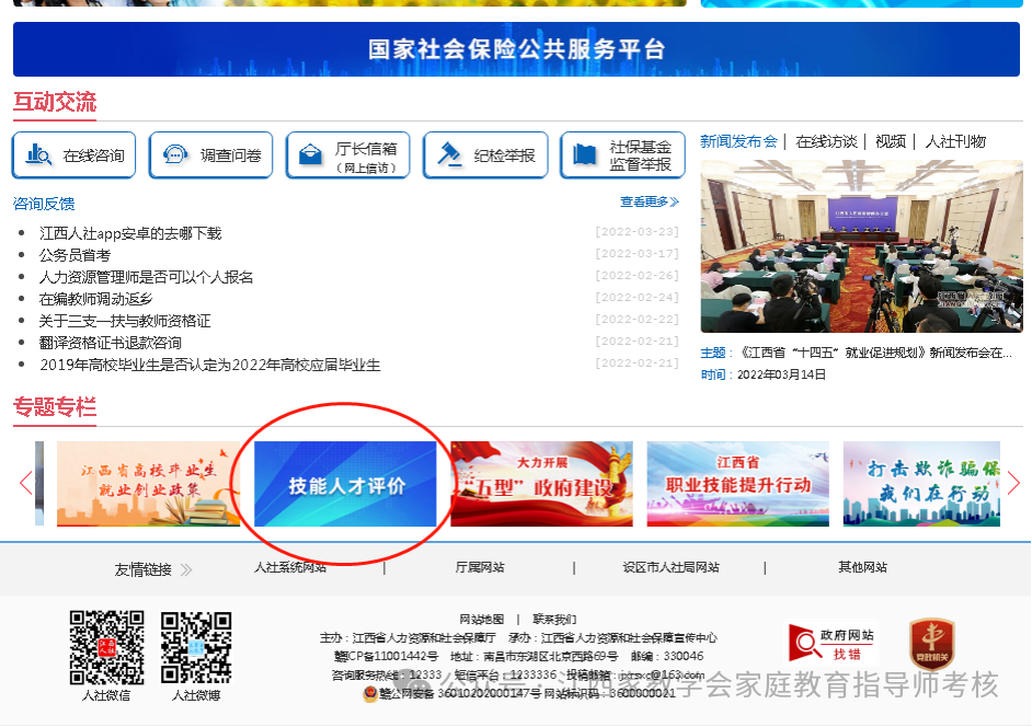 1、江西省人力资源和社会保障厅官网(http://rst.jiangxi.gov.cn/)底部“技能人才评价”专栏(在官网下部专题专栏区)