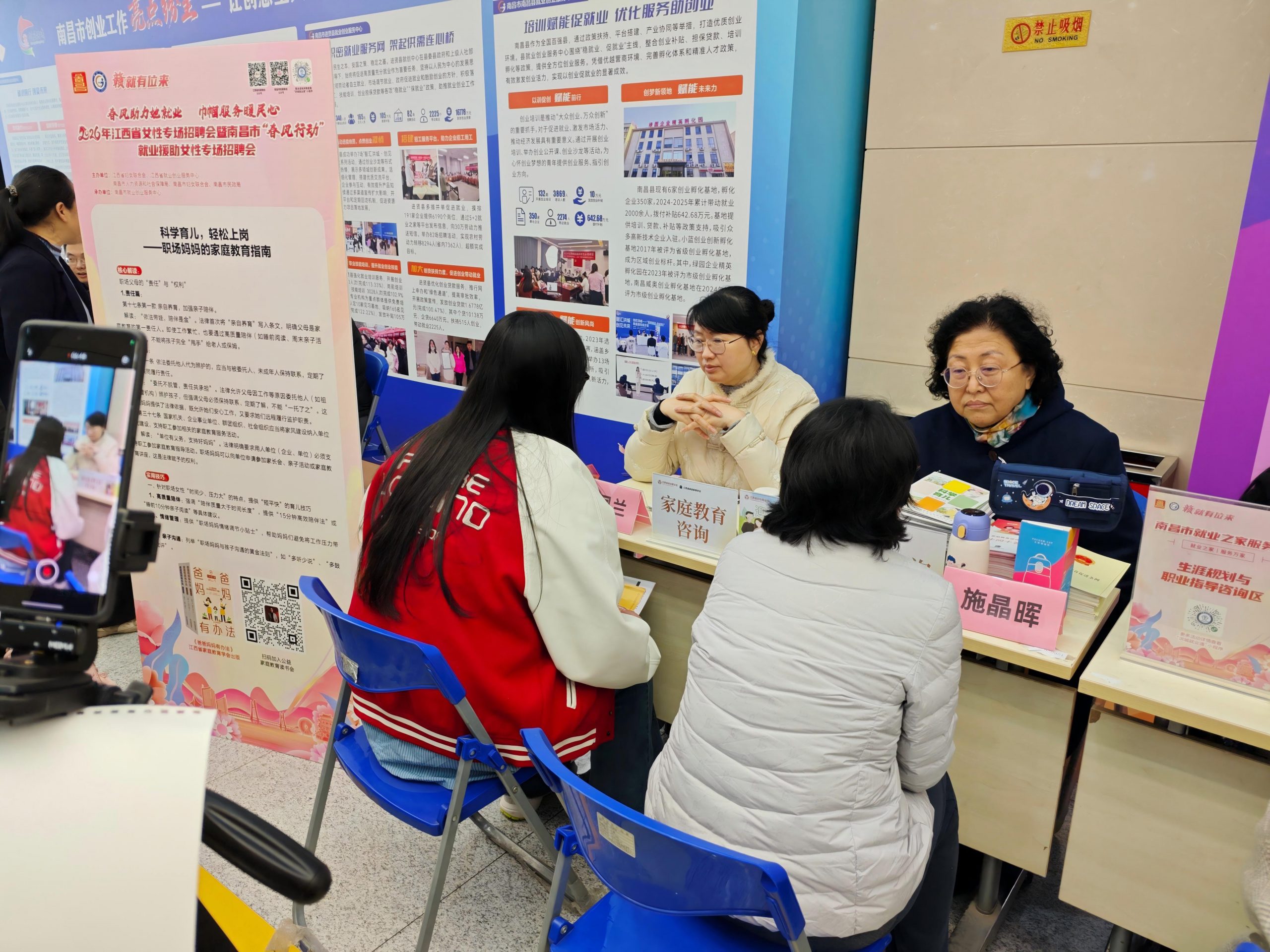 3月7日,由江西省妇女联合会、江西省就业创业服务中心主办的“春风助力她就业 巾帼服务暖民心”2026年江西省女性专场招聘会在南昌市人社大厦成功举行。江西省家庭教育学会作为支持单位受邀参与,并在活动现场设立专业咨询台,为女性求职者提供了面对面的家庭教育指导与心理咨询公益服务,受到广泛欢迎。