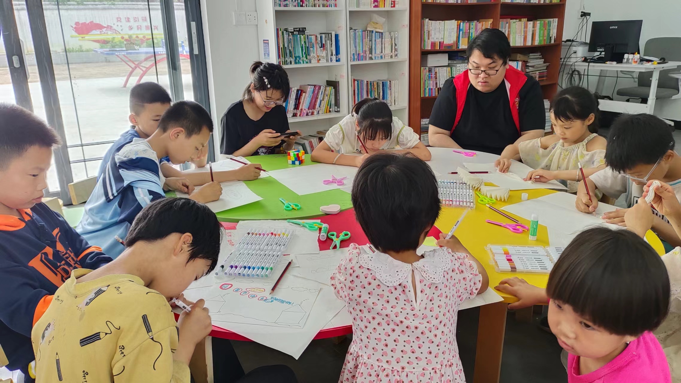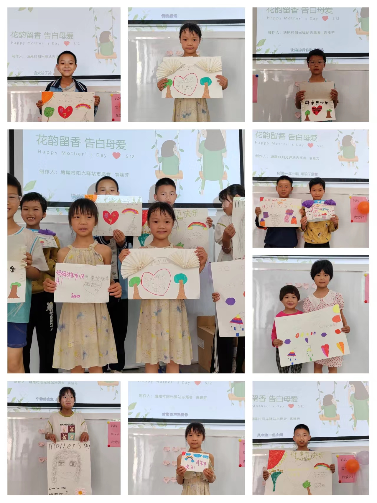 随后,孩子们在志愿者的指导下共同制作母亲节礼物,孩子们在画纸上画出各种美丽的图案,写上了对妈妈的祝福,用稚嫩的画笔表达对母亲的爱,脸上洋溢着幸福的笑容。