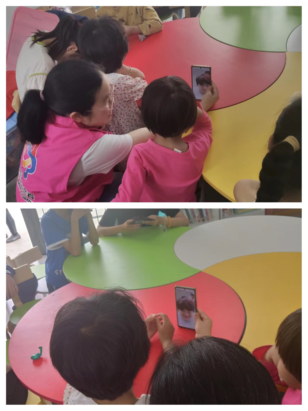 其次,工作人员引导儿童进行亲情连线视频交流,引导孩子告白母亲。小朋友吴佳惠及吴佳静在志愿者的帮助下和远在广东深圳务工的妈妈进行了现场亲情连线,让小孩与母亲实现“云团圆”。同时鼓励在场的孩子们写出妈妈的优点及最想对妈妈说的话。