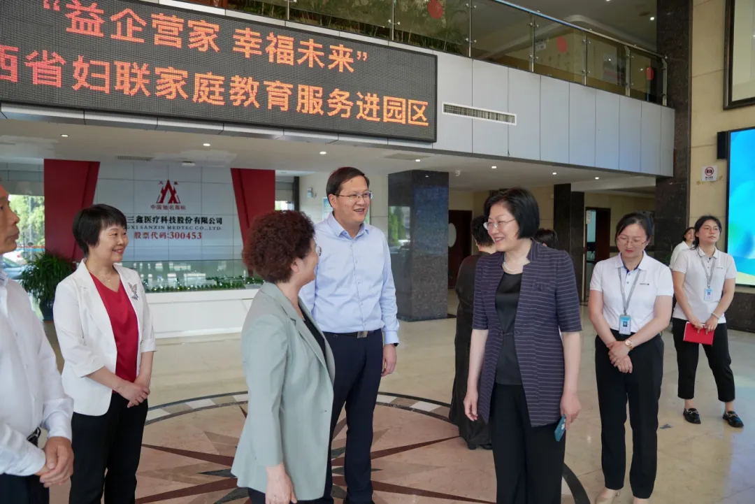 为进一步了解园区家庭教育服务建设情况,钱昀一行在启动仪式结束后先后来到两个分会场。在江西三鑫医疗科技股份有限公司,钱昀认真听取了企业发展历程、女职工担当作为、家庭家教家风建设等内容,并了解了企业举办的首场婚姻家庭讲座和情绪管理课堂活动的开展情况。钱昀希望企业提升责任意识,持续深化家庭家教家风建设,通过加大对家庭教育的宣传推广,鼓励更多的企业和家庭参与其中,形成家校社协同育人的共同体。