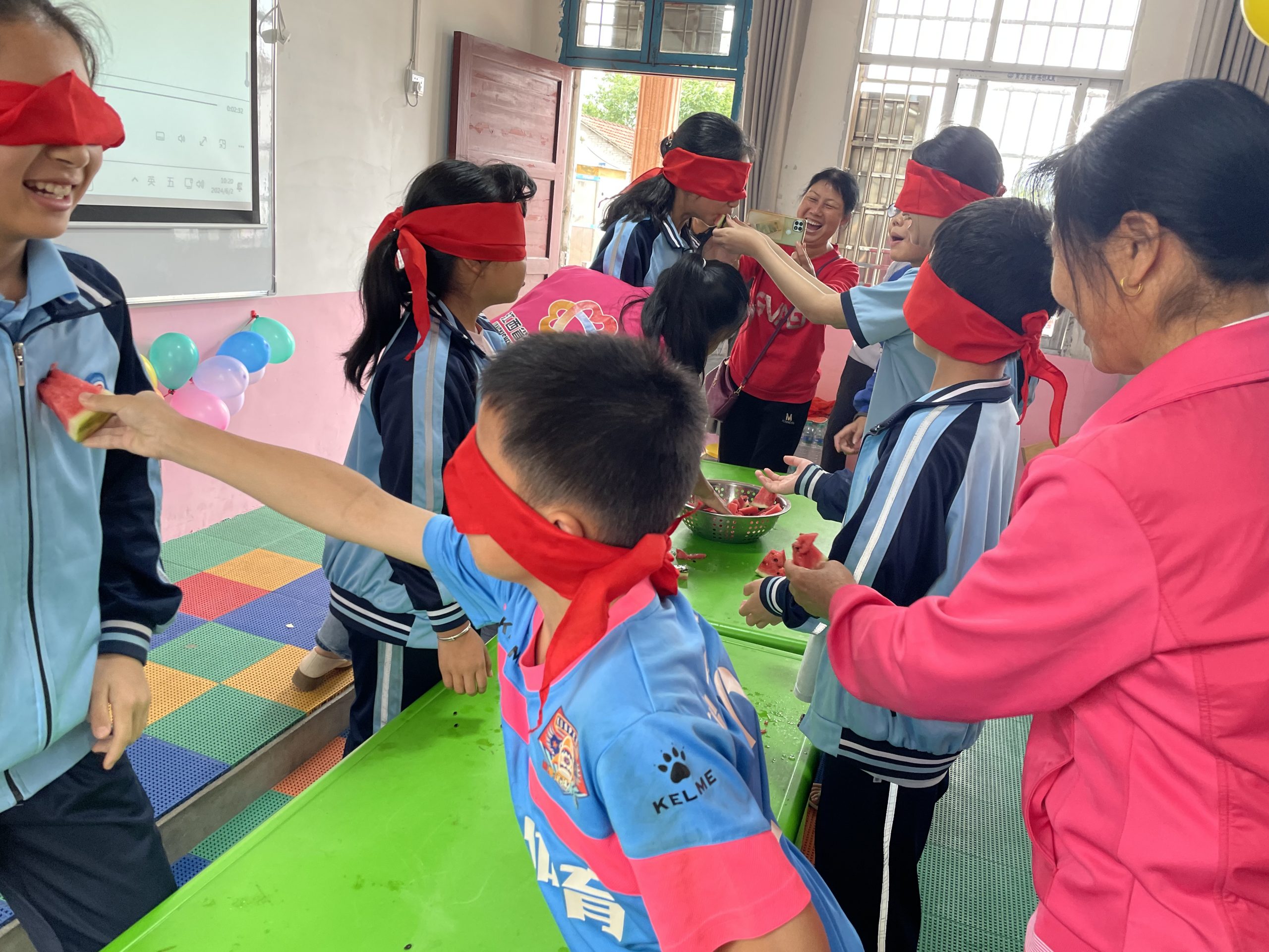 精彩的亲子互动环节来啦!一起来看看他们是怎么成功将西瓜喂到对方口中吧。