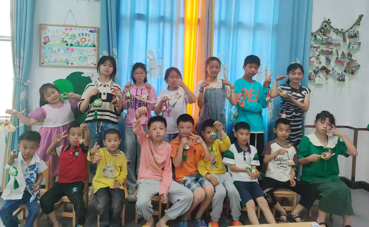 重五之日,榴花盛开,端午的韵味弥漫在空气中。这个传统节日 ,不仅承载着吃粽子、赛龙舟、挂艾叶菖蒲的丰富习俗,更蕴含着深厚的中华文化印记,传递着人们对美好生活的祈愿,对家国情怀的坚 守与传承。上饶市余干县周家村阳光驿站活动组织留守儿童开展“惜怀传统 浓情端午”主题活动。通过包粽子,编织彩蛋兜、自制香囊、编竹蔑龙舟的体验与实践,让儿童亲身感受端午的文化魅力,弘扬端午文化精髓,进一步厚植家国情怀,赓续民族精神根脉。