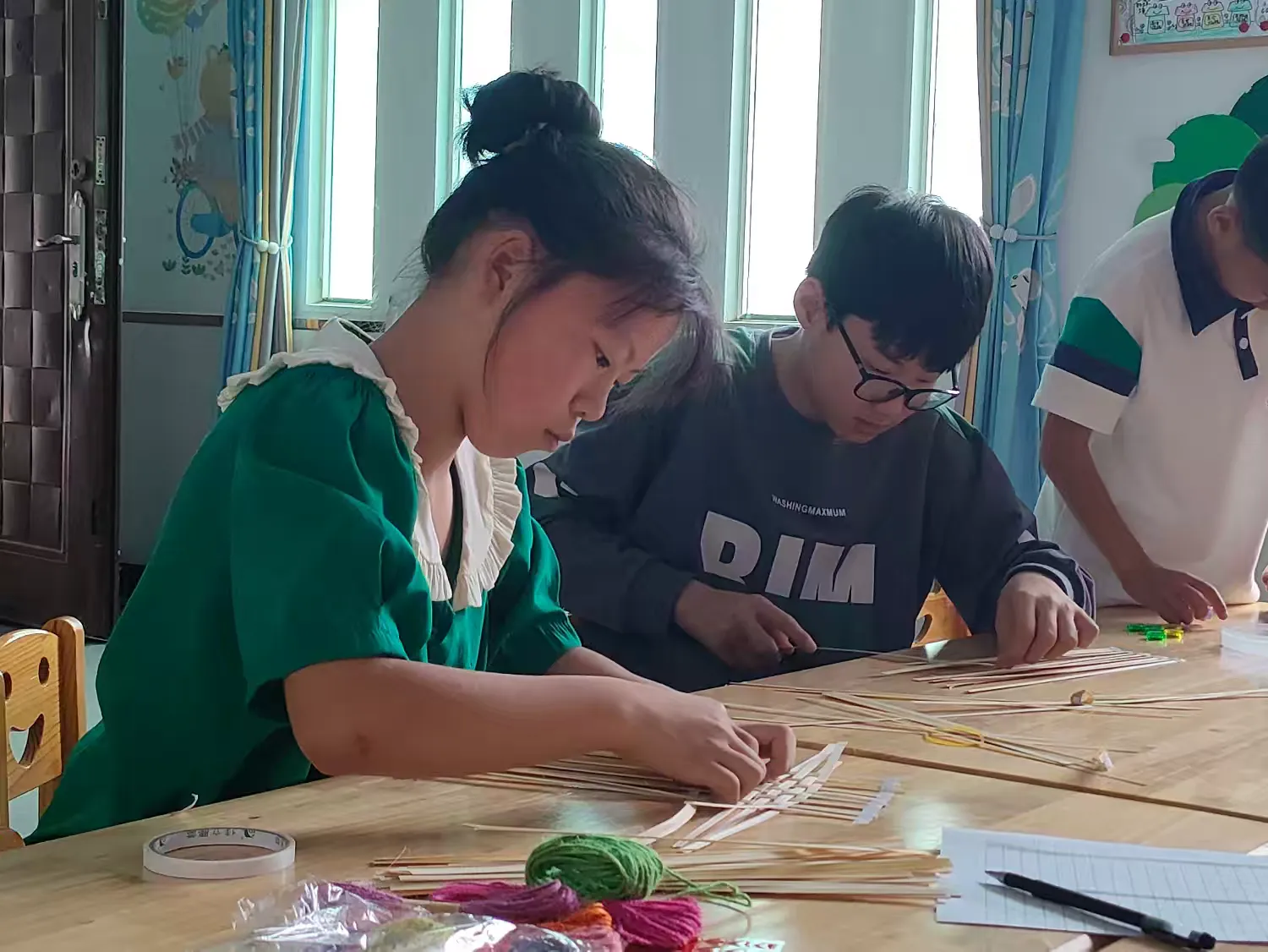接下来带领孩子们感受竹编的悠久历史和文化内涵,组织孩子们用竹篾编织龙舟小船,让孩子们在动手的过程中体会中华民族的智慧精髓,传承传统文化手艺;