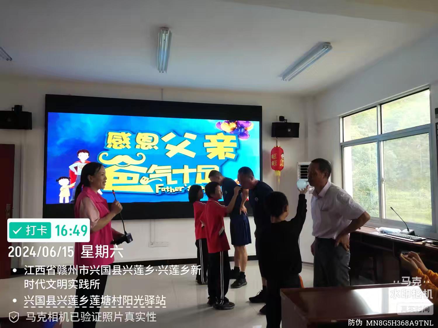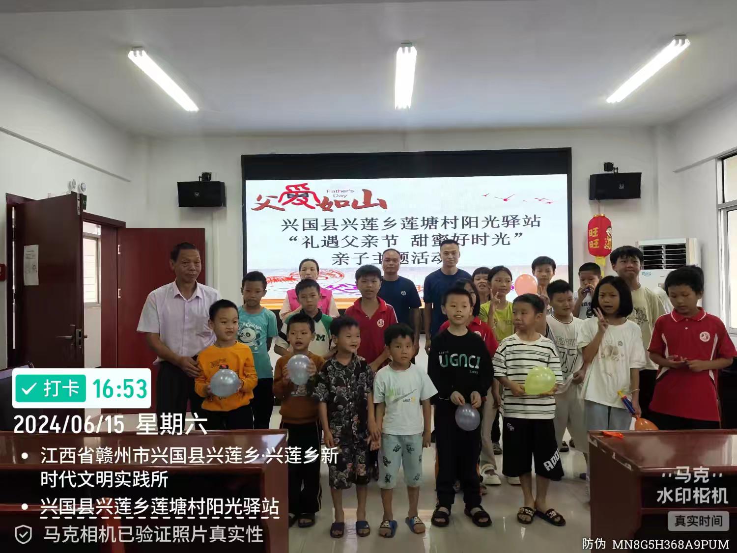 父亲的爱是一颗不落的星星,温暖幸福的微笑永远荡漾在我们的心里,父亲的角色在孩子的成长道路上有着不可成缺的作用,在现代家庭中,爸爸在孩子心目中的形象是繁忙、威严的,孩子与爸爸接触交流的机会也是比较少的。为此,在父亲节到来之际,2024年6月15日莲塘村阳光驿站开展“礼遇父亲节甜蜜好时光”的亲子主题活动,提供孩子和爸爸沟通交流的机会,增进父子、父女间的感情。