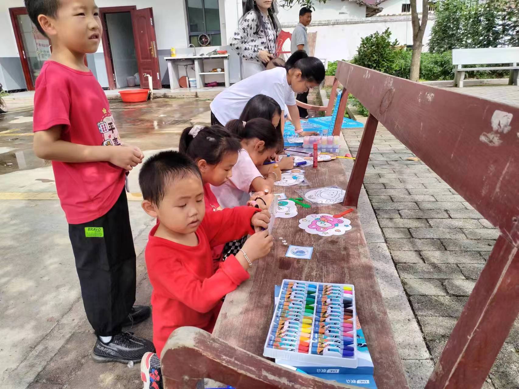 活动现场工作人员向当地村民与小朋友详细介绍了端午节的起源习俗以及香囊的寓意,在工作人员和志愿者的耐心指导下,大人和小孩分别开始自己喜欢的活动。