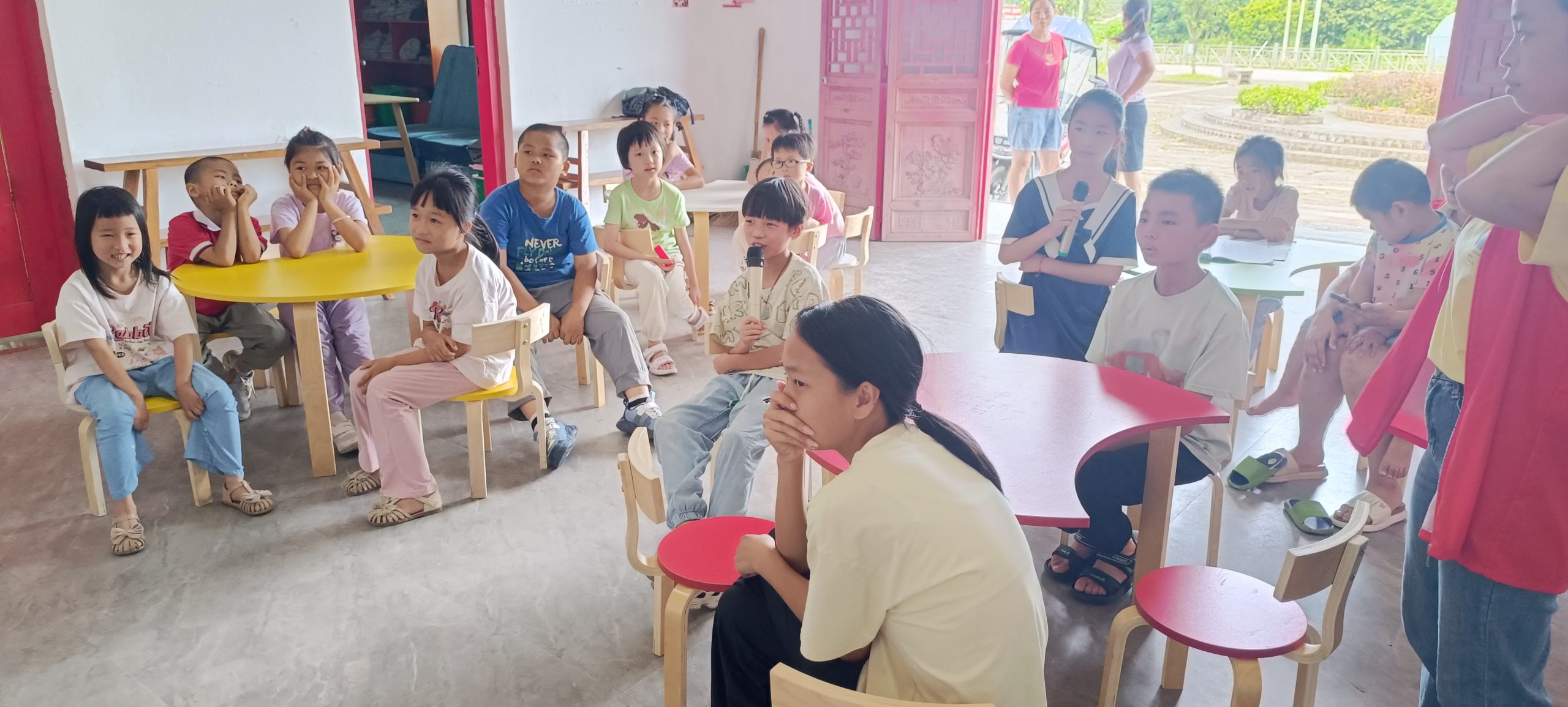 工作人员带领孩子们一起合唱《没有共产党就没有新中国》《我们是共产主义接班人》等红色歌曲。