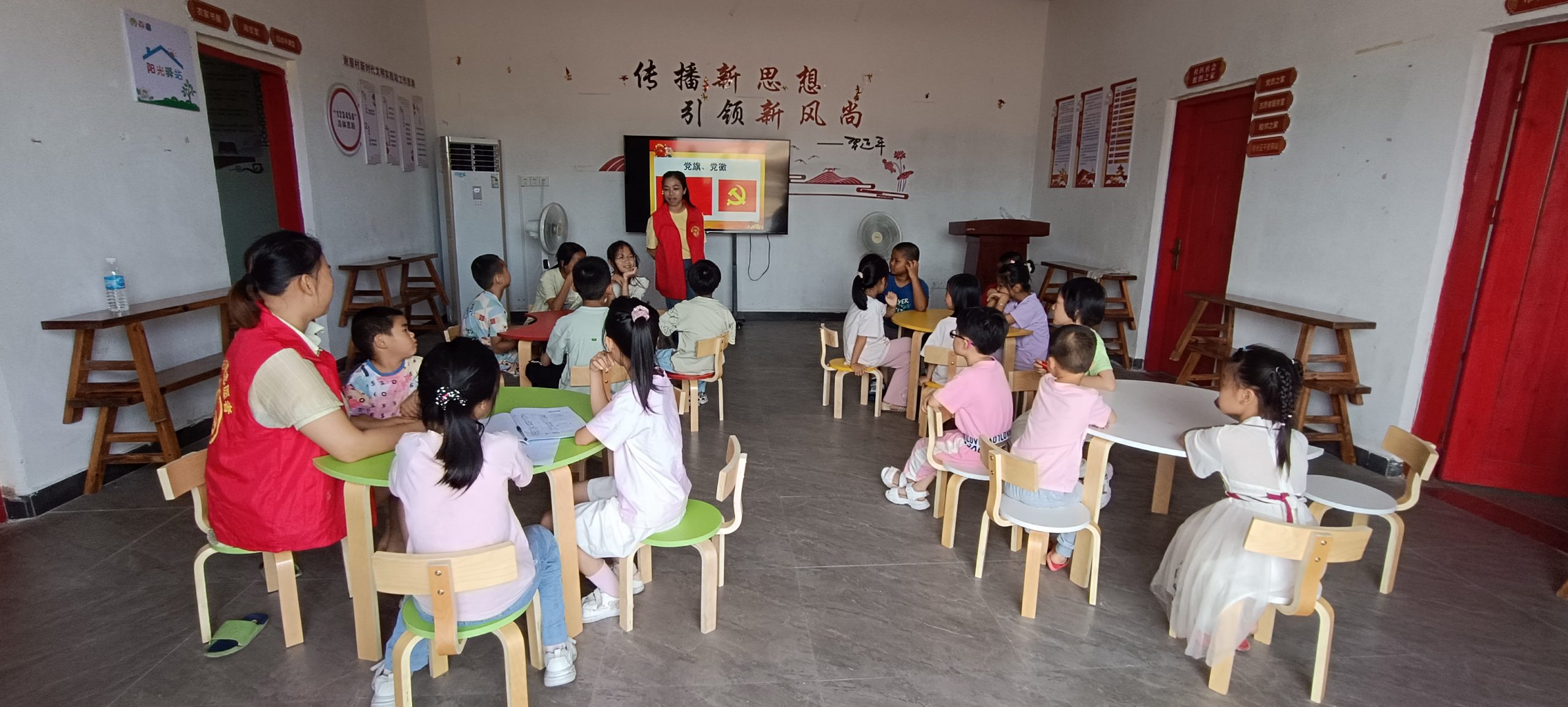 中国共产党建党日于1921年7月23日成立,后来把7月1日作为中国共产党的诞辰纪念日。儿童作为未来祖国的花朵,向儿童宣传关于建党节的由来及其相关知识,让儿童了解知道没有共产党就没有新中国,培养儿童热爱中国共产党的情感,感恩党领导下带来的幸福生活。6月29日,谢屋村阳光驿站开展了“童心跟党走,畅享中国梦”主题活动。