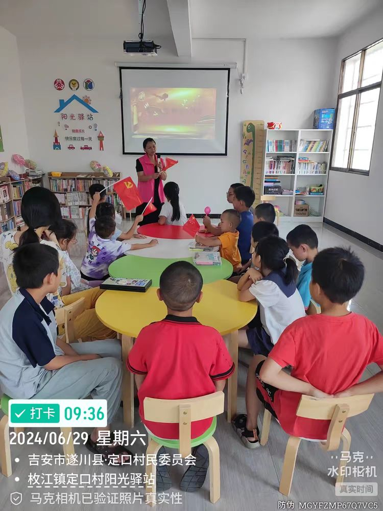 为庆祝中国共产党成立103周年,培养儿童热爱中国共产党的情感,引导儿童全面回顾党的光辉历程, 激发他们热爱中国共产党的高尚情操,树立民族自豪感和历史任感。6月29日,枚江镇定口村阳光驿站开展了“童心向党 畅享中国梦”系列活动。