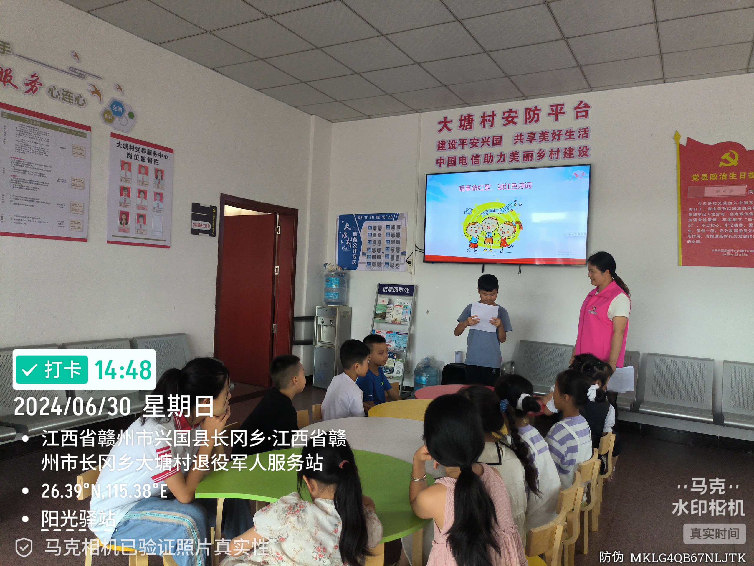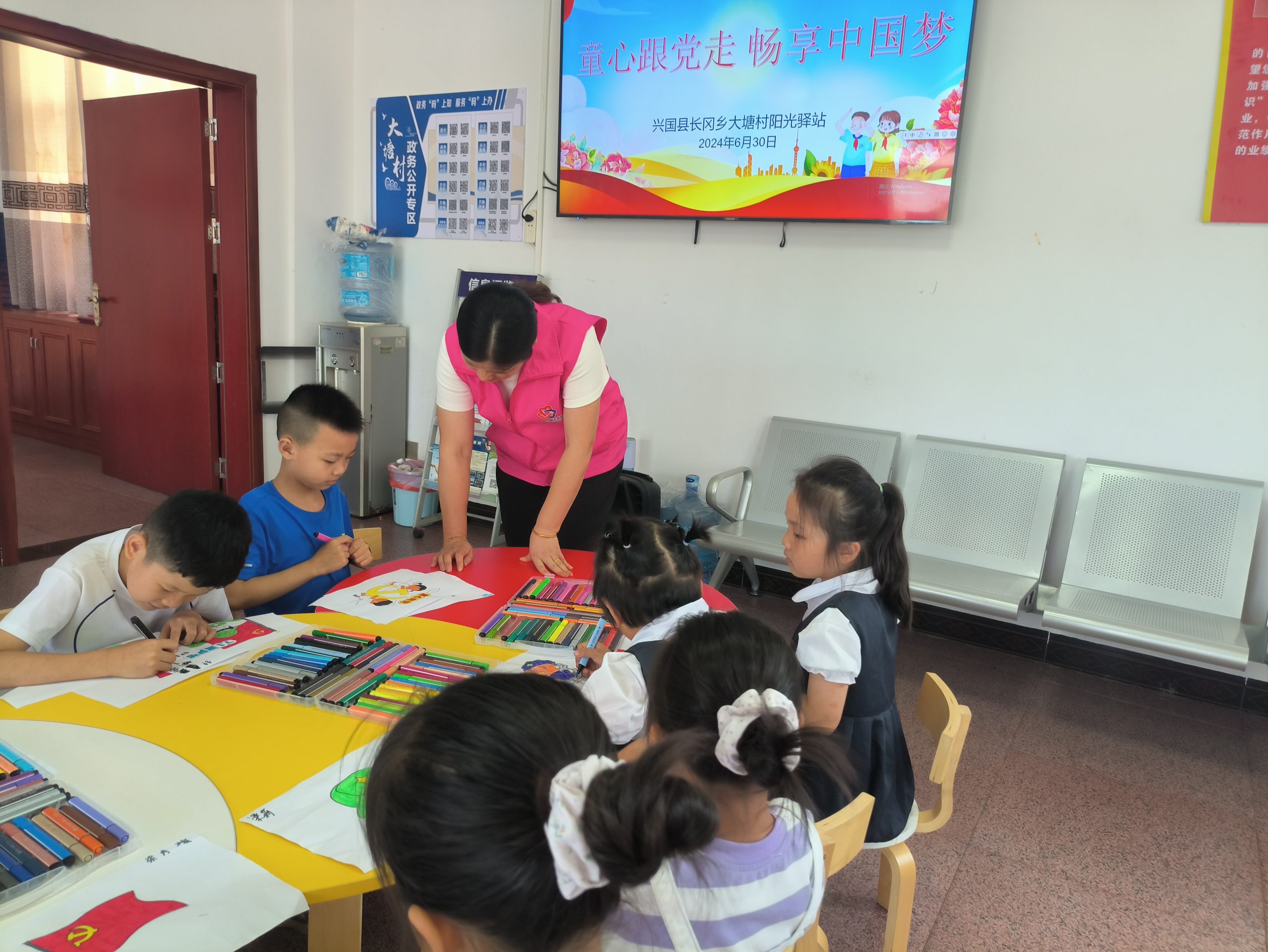 为了向儿童宣传关于建党节的由来及其相关知识,让儿童了解知道没有共产党就没有新中国,培养儿童热爱中国共产党的情感,感恩党领导下带来的幸福生活。2024年6月30日下午,兴国县长冈乡大塘村阳光驿站开展“童心跟党走 畅享中国梦”主题活动。