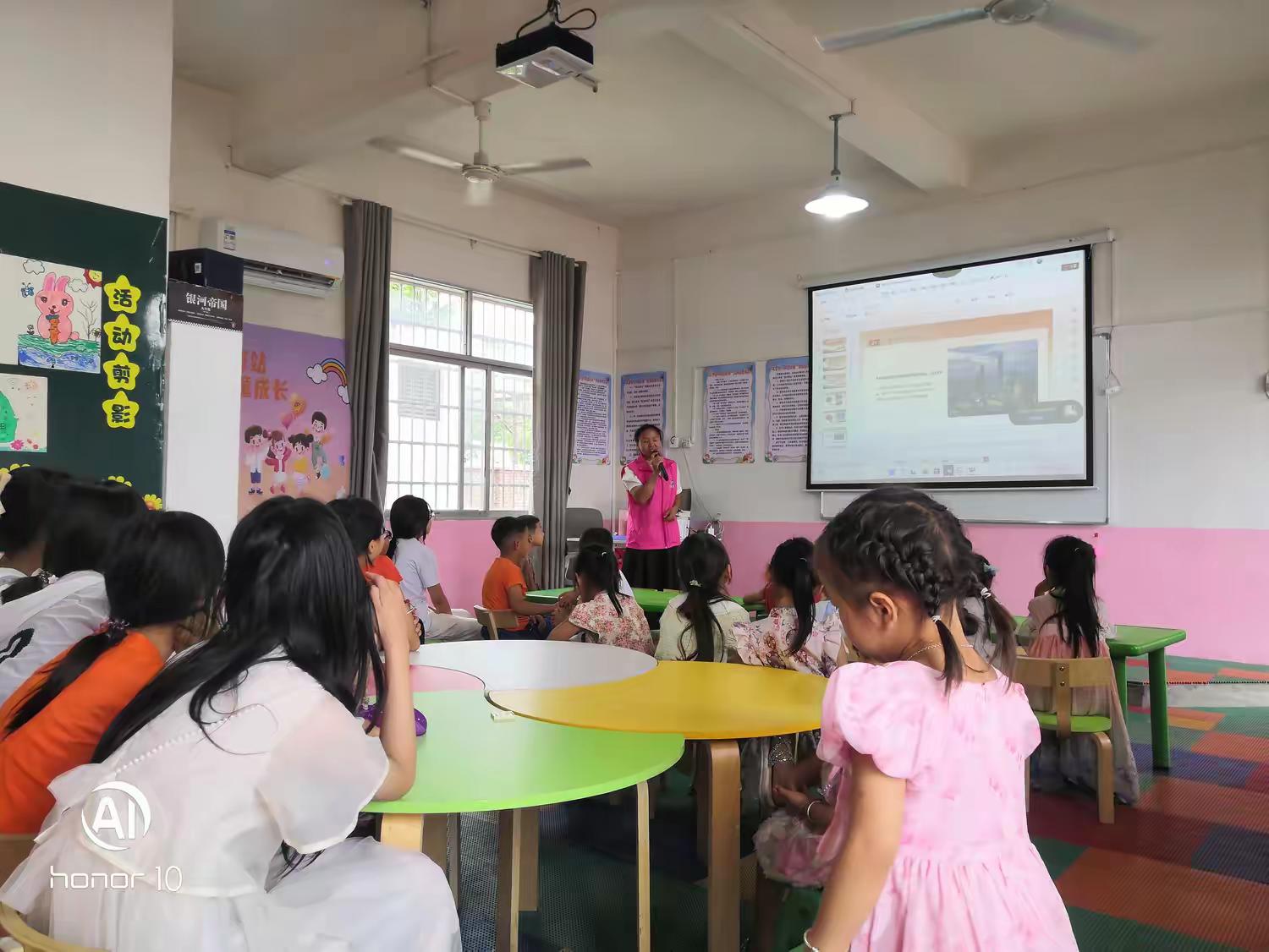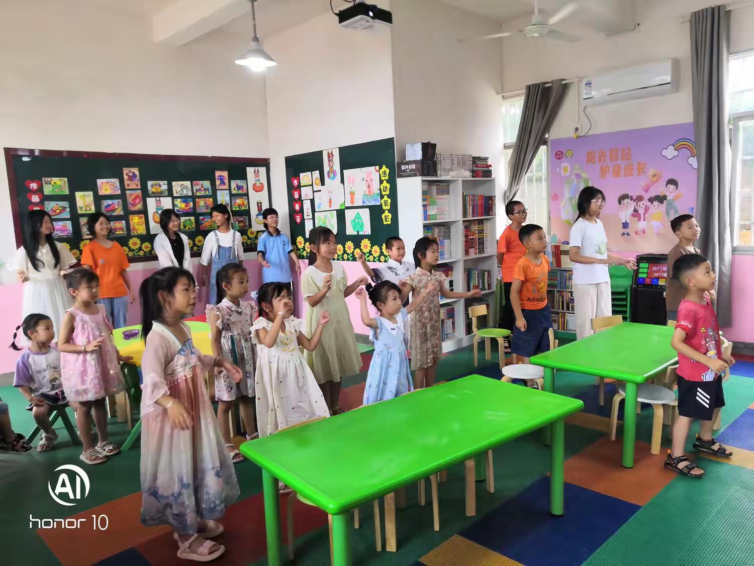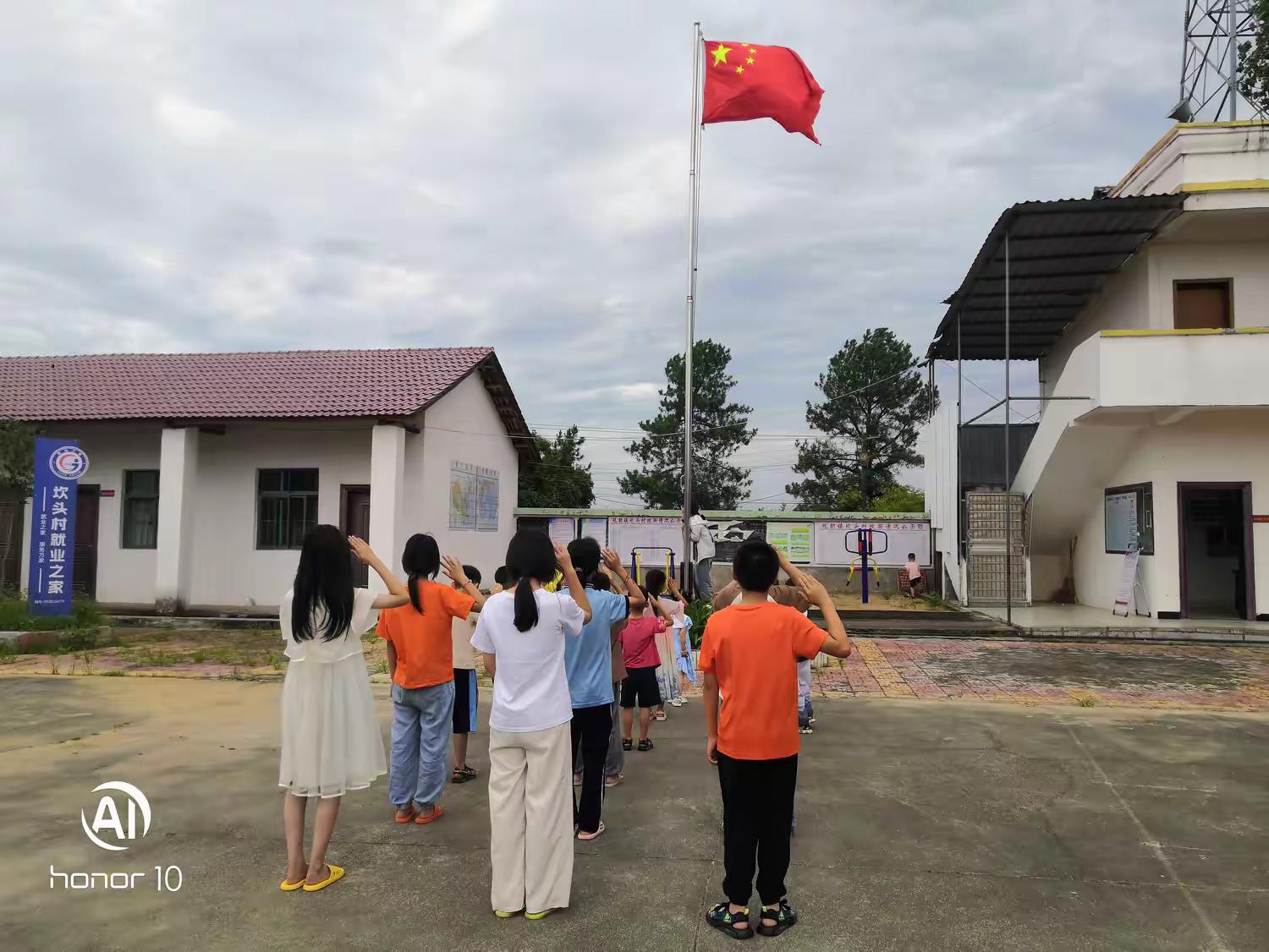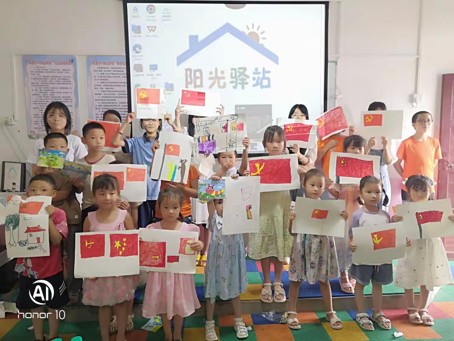 七一建党节来临之际,为引导孩子全面回顾党的光辉历程, 激发他们热爱中国共产党的高尚情操,激发他们树立民族自豪感和历史任感。培养儿童热爱中国共产党的情感,感恩党领导下带来的幸福生活。坎头村阳光驿站于2024年6月30日联合坎头村民委员会组织了“童心跟党走,畅享中国梦”主题活动。孩子们在志愿者老师的组织下升国旗。
