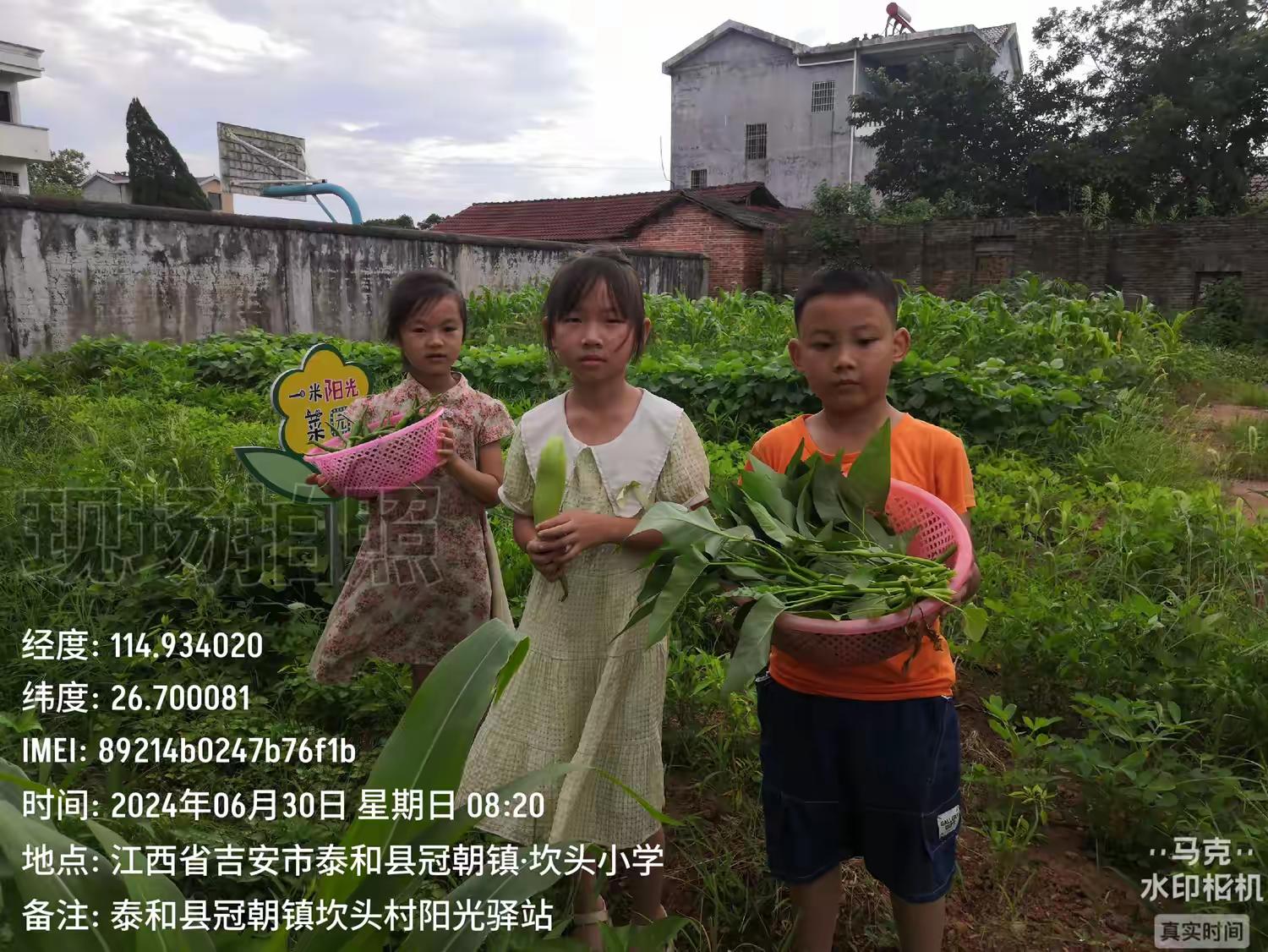 “瞧,“一米阳光菜园”里收获的有辣椒,空心菜,茄子……..,刚好可以用来幸福食堂。”