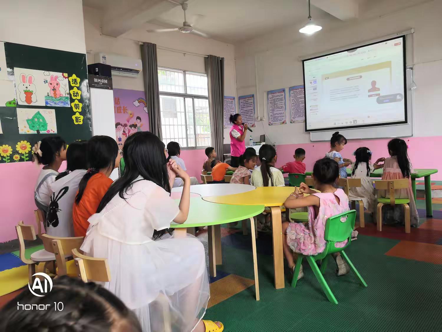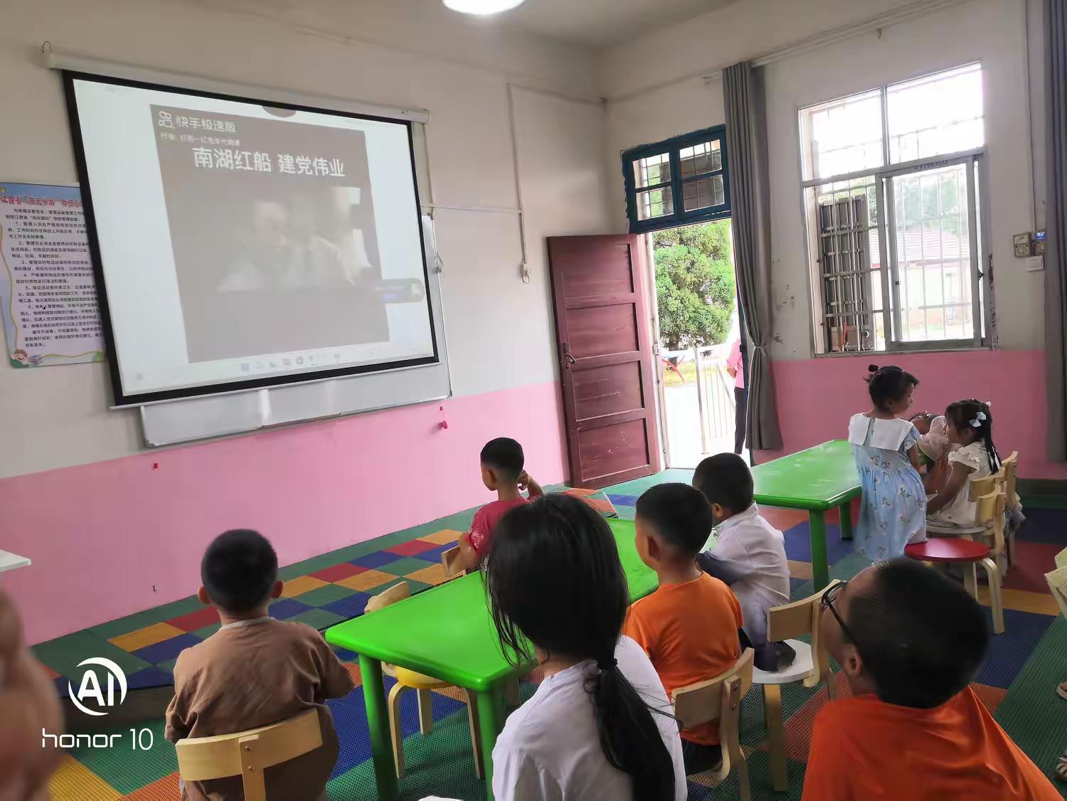 孩子们在聚精观看《红船》小视频。观看结束后志愿者老师提问与孩子们互动,加深孩子们对党的诞生历程和革命先烈的英勇事迹的认识。