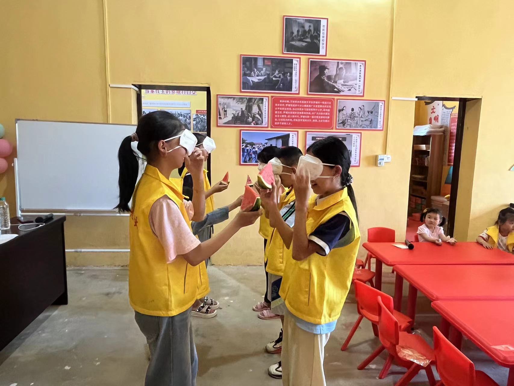 第二环节准备的游戏(有蒙眼喂西瓜,小球水上漂)。