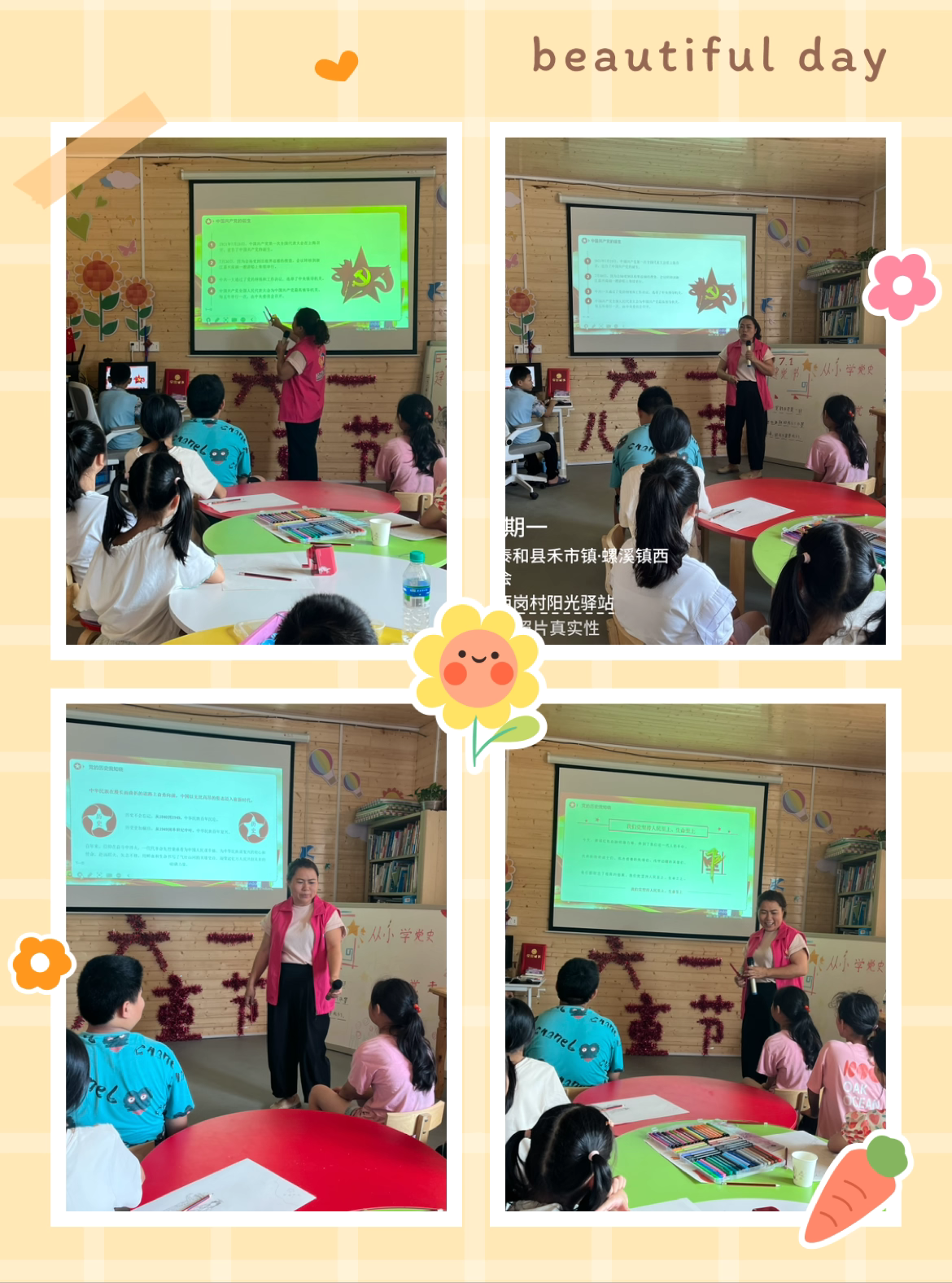 通过播放视频、图片、声情并茂地讲解等方式,让孩子们了解中国共产党以及建党节的由来,知道1921年7月1日中国共产党正式成立。同时理解我们今天的幸福生活,是在中国共产党的正确领导下才有的,教育孩子从小树立热爱祖国、热爱中国共产党的责任感和使命感。