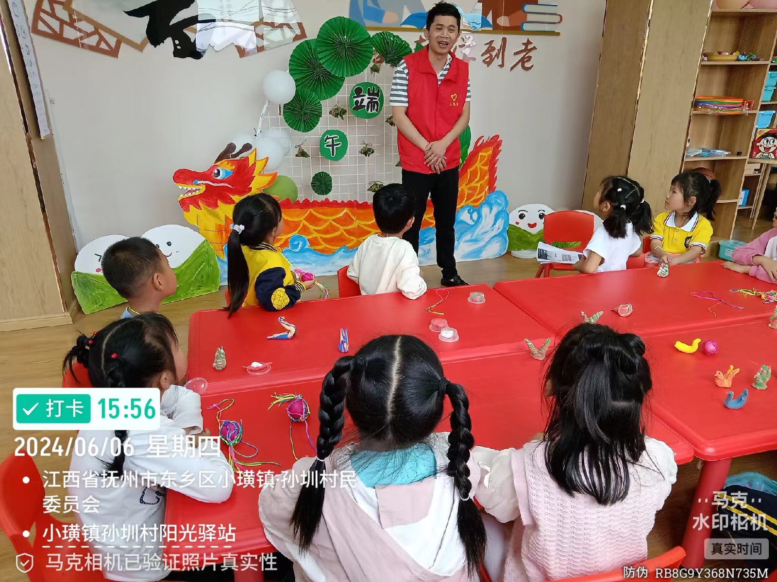 初夏时节、艾草飘香。为弘扬中华传统文化和爱国主义精神,同时关注“一老一小”群体,增强村里凝聚力,以及践行尊老爱幼的传统美德。6月6日下午,小璜镇孙圳村阳光驿站开展“惜怀传统,浓情端午”端午节主题活动。