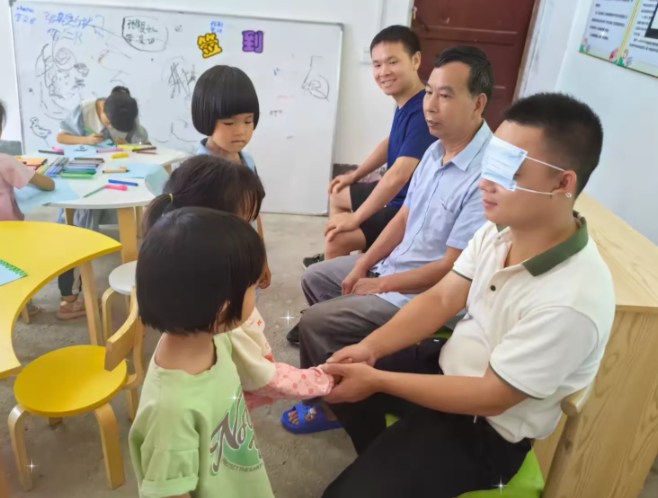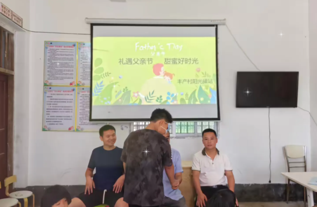 每年的6月第三个星期日是父亲节。“有一种记忆可以很久,有 一种思念可以很长,有一双手的手心特别温暖,让我们一生无法忘怀 ……”有人说,父亲的爱是一颗不落的星星,温暖幸福的微笑永远荡 漾在我们的心里。父亲的角色在孩子的成长道路上有着不可或缺的作 用,在现代家庭中,爸爸在孩子心目中的形象是繁忙、威严的,孩子 与爸爸接触交流的机会也是比较少的。为此,在父亲节到来之际,车溪乡丰产村阳光驿站开展“礼遇父亲节 甜蜜好时光”的亲子主题活动,提供孩子和爸 爸沟通交流的机会,增进父子、父女间的感情。工作人员向儿童及家长介绍自己,并引领儿童一起做《最棒的老爸》暖场。