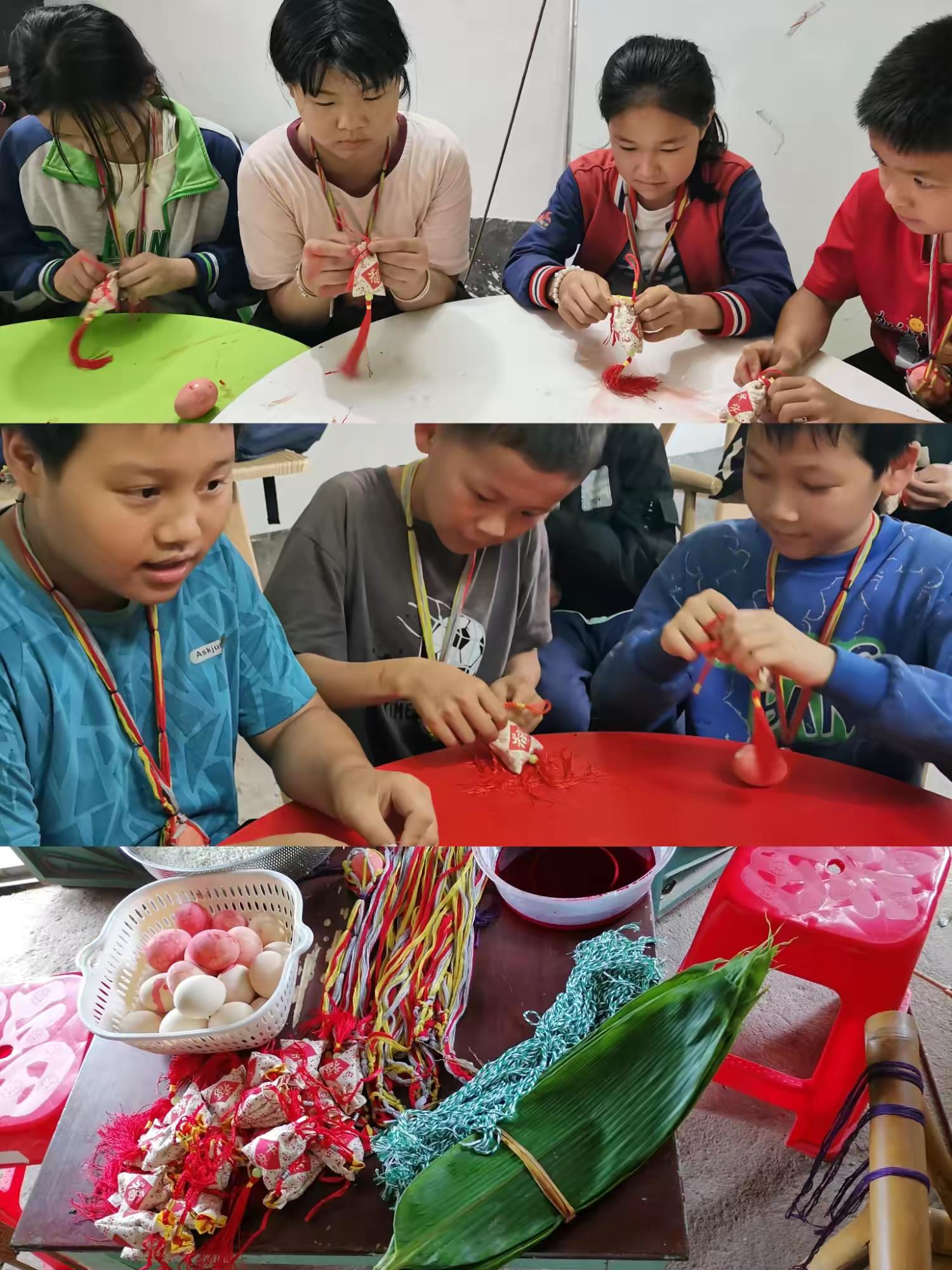 重五之日,榴花盛开,端午的韵味弥漫在空气中。这个传统节日 ,不仅承载着吃粽子、赛龙舟、挂艾叶菖蒲的丰富习俗,更蕴含着深 厚的中华文化印记,传递着人们对美好生活的祈愿,对家国情怀的坚 守与传承。活动通过包粽子,挂红蛋的体验与实践,让儿童亲身感受 端午的文化魅力,弘扬端午文化精髓,进一步厚植家国情怀,赓续民 族精神根脉。2024年6月9日上午,于都县车溪乡丰产村阳光驿站一场以“惜怀传统 浓情端午”为主题的活动在这里展开。