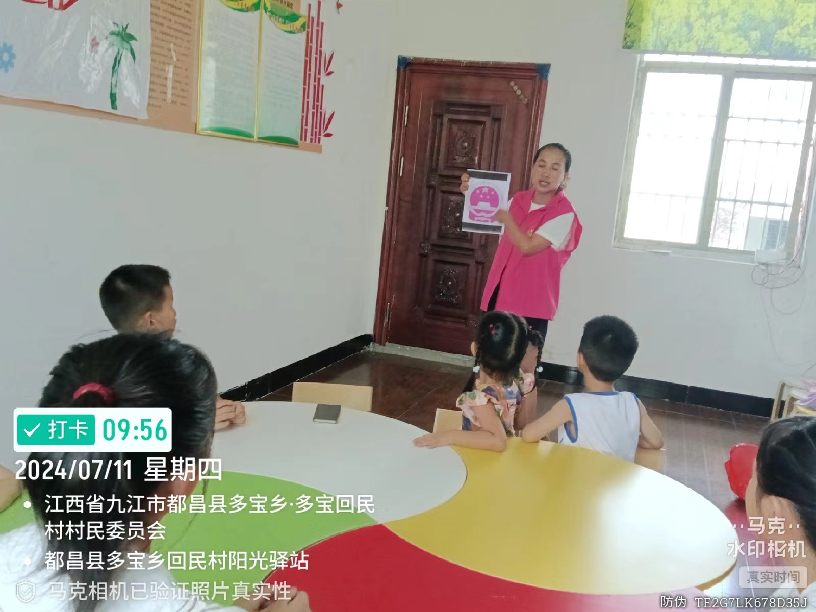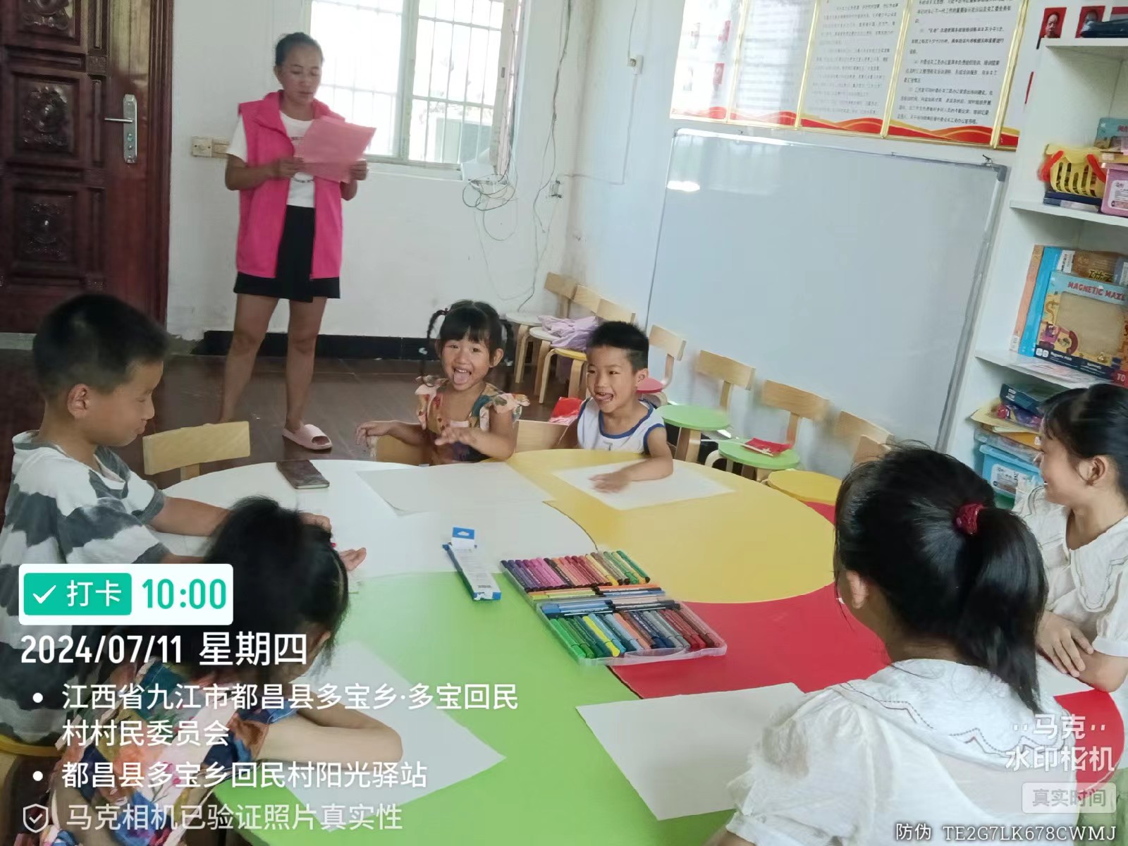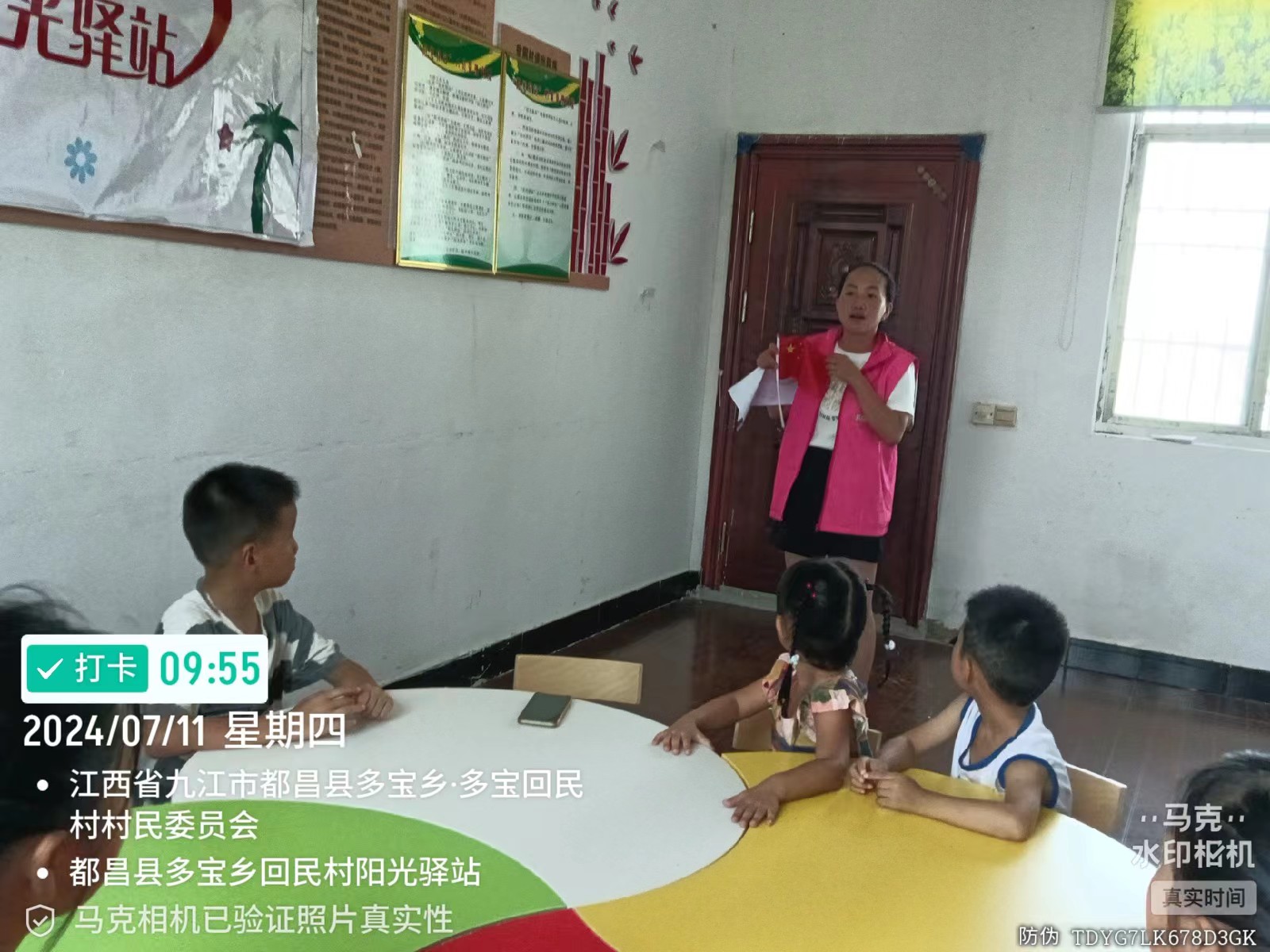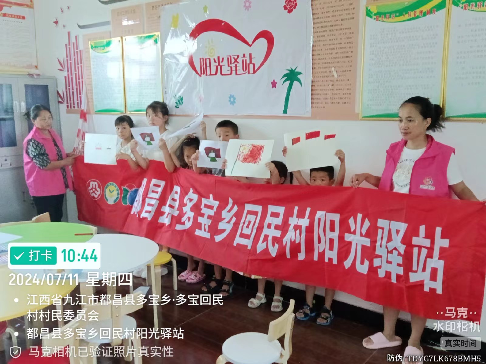 中国共产党建党日于1921年7月23日成立,后来把7月1日作为中国共产党的诞辰纪念日。为庆祝“七一”建党103周年,营造少年儿童坚定感党恩、听党话、跟党走的浓厚氛围,树立爱党爱国社会主义情怀,让儿童了解没有共产党就没有新中国,培养儿童热爱中国共产主义情感,都昌县多宝乡回民村阳光驿站于7月11日开展“童心跟党走,畅享中国梦”主题活动。
