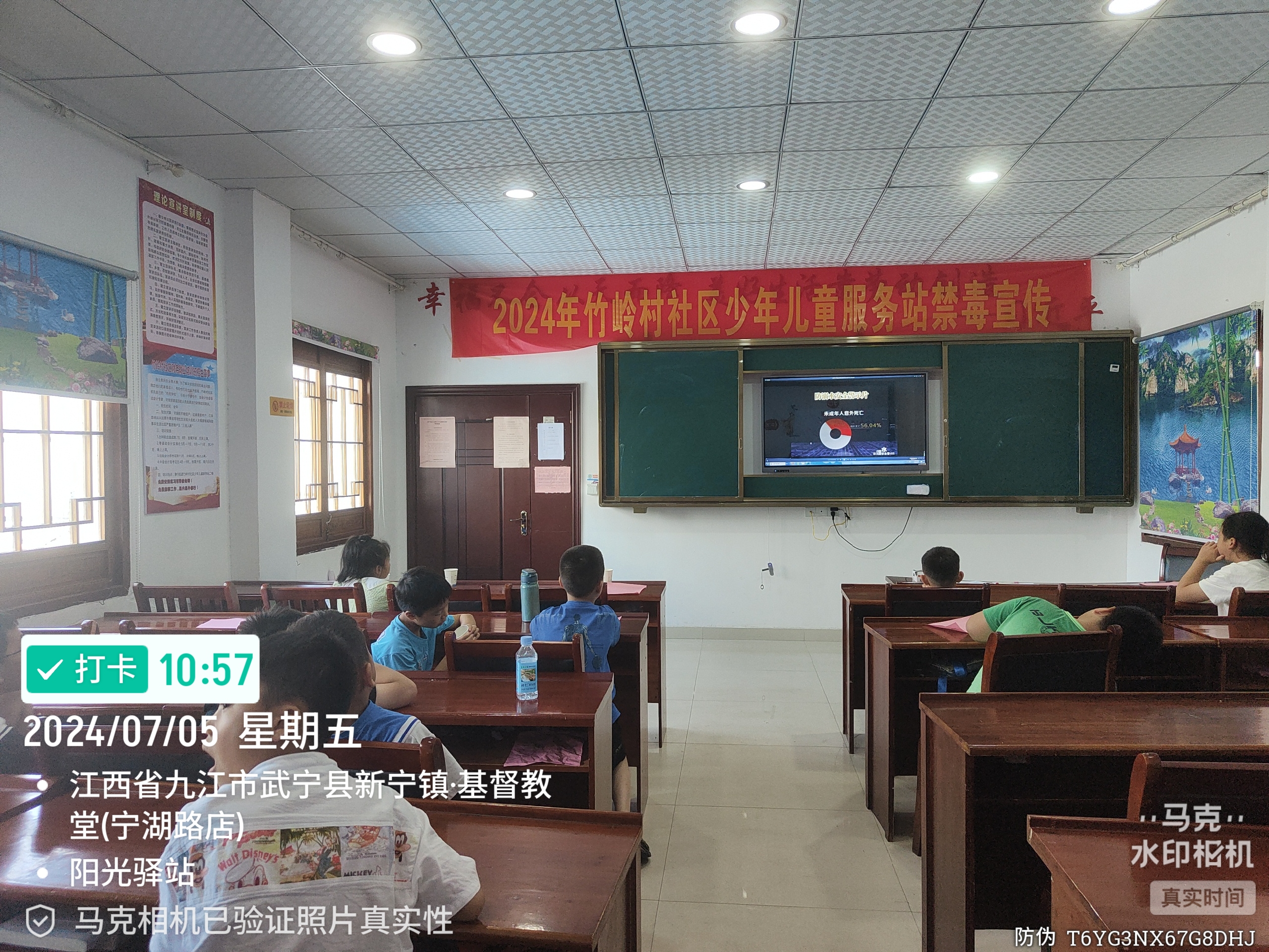 炎炎夏日,暑期已至,许多孩子在玩耍的时候会选择清凉的地方,溺水是中小学生非正常死亡的第一“杀手”。随着气温渐高,溺水事故频频发生,为了保护儿童在暑期的安全,在7月5日,武宁县竹岭村社区阳光驿站开展了“防溺水安全教育”活动。