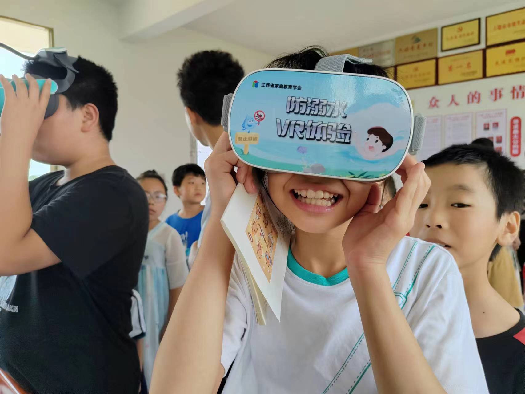 江西省家庭教育学会的儿童安全教育讲师团队通过VR设备、救生设备、心肺复苏模型等设备,与孩子们积极互动,引领孩子们在学习防溺水知识的同时,能够沉浸式的体验各类救生设备,加深对防溺水知识的理解, 提高他们的自我保护意识和防护能力。