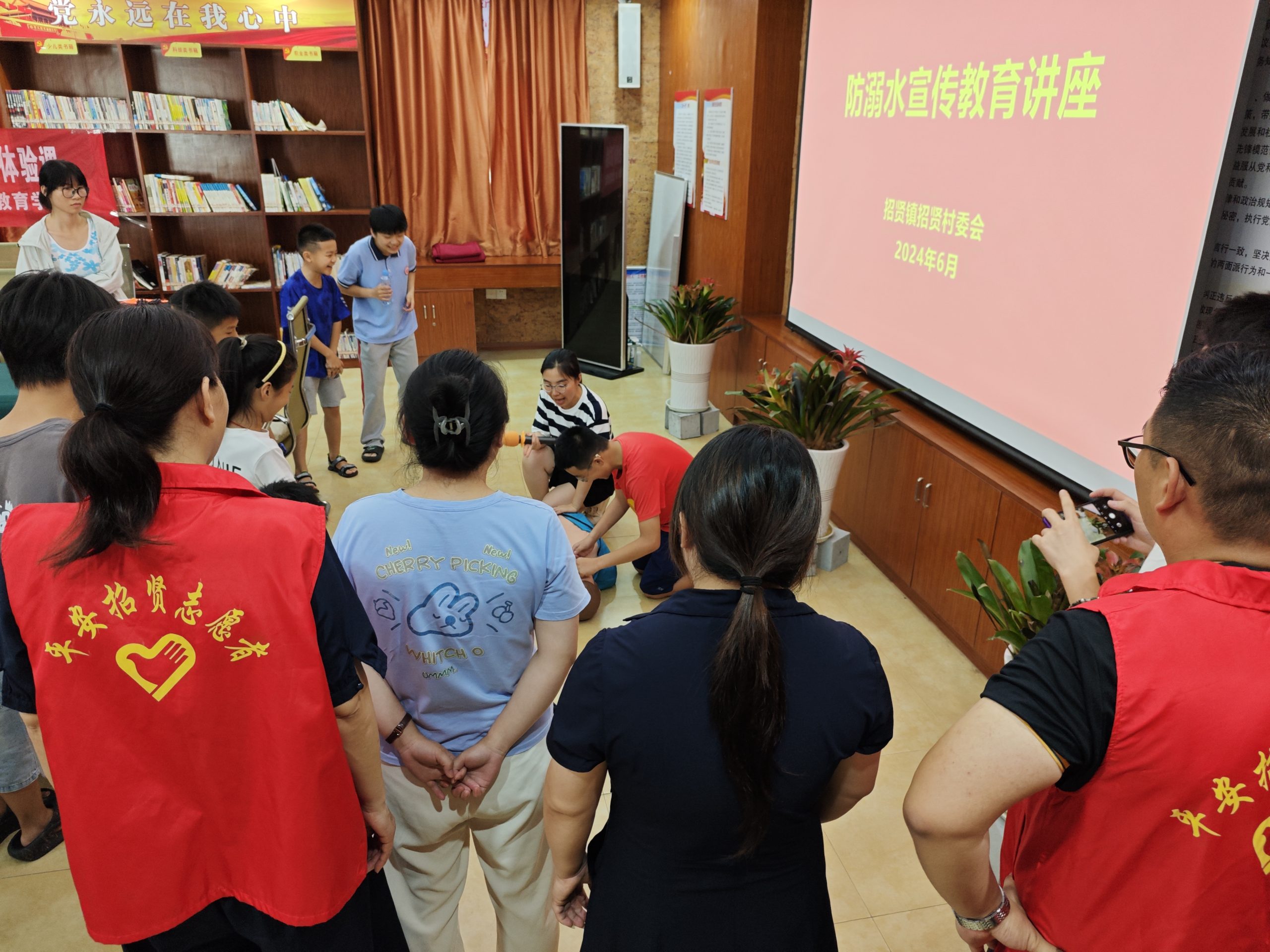 活动现场,江西省家庭教育学会儿童安全讲师王珍妮和社区志愿者们通过演习道具、发放宣传资料、现场讲解等多种形式,向儿童们普及防溺水知识。