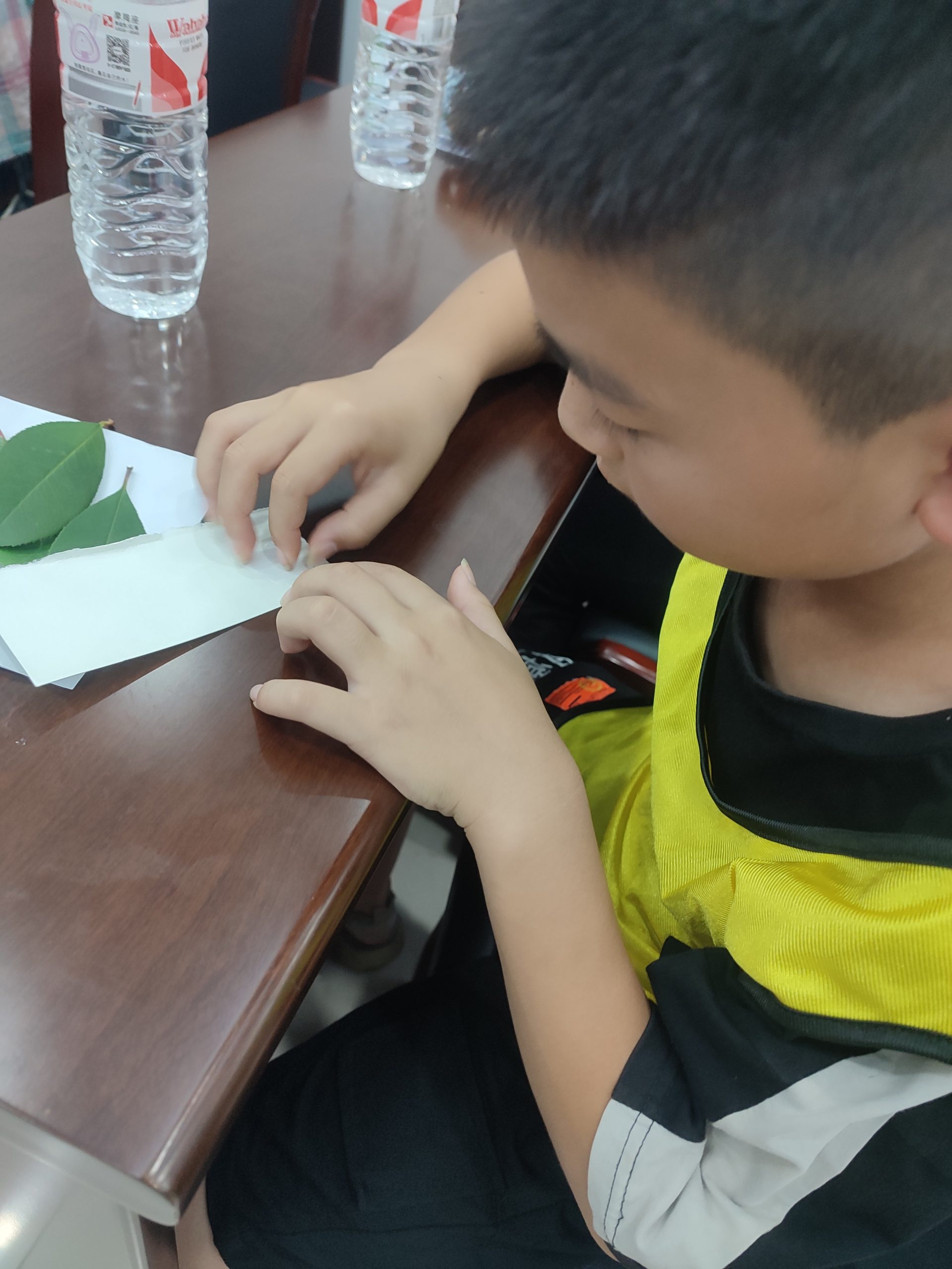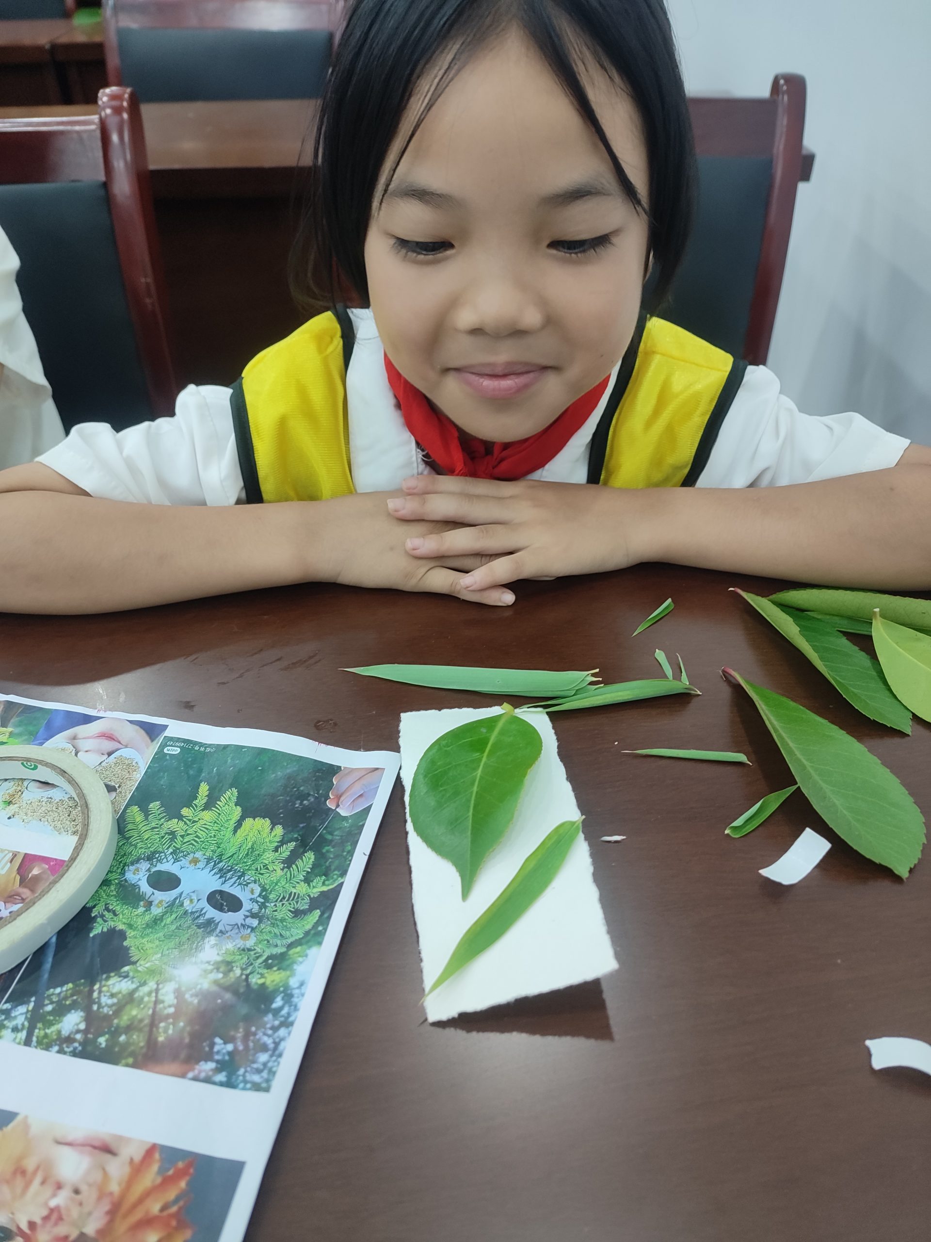 孩子们利用摘来的各种树叶做成了各种各样的书签