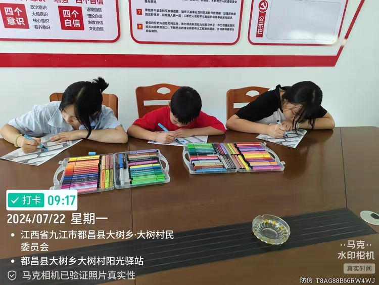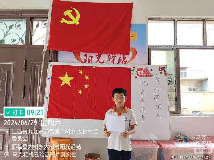 ⼉童作为未来祖国的花朵,为了让⼉童深⼊ 了解七⼀建党节,培养他们拥护中国共产 党,热爱祖国的情感,感恩党领导下带来的 幸福⽣活,6⽉29⽇,都昌县⼤树乡⼤树村阳 光驿站开展“童⼼跟党⾛,唱响中国梦”主题 活动。
