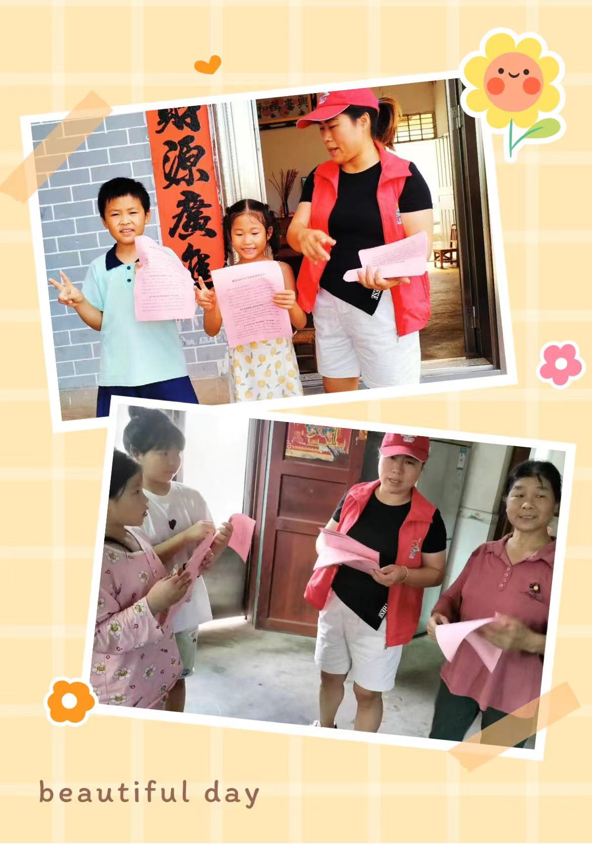 志愿者进行家访宣传防溺水知识,让孩子们不要靠近水边。