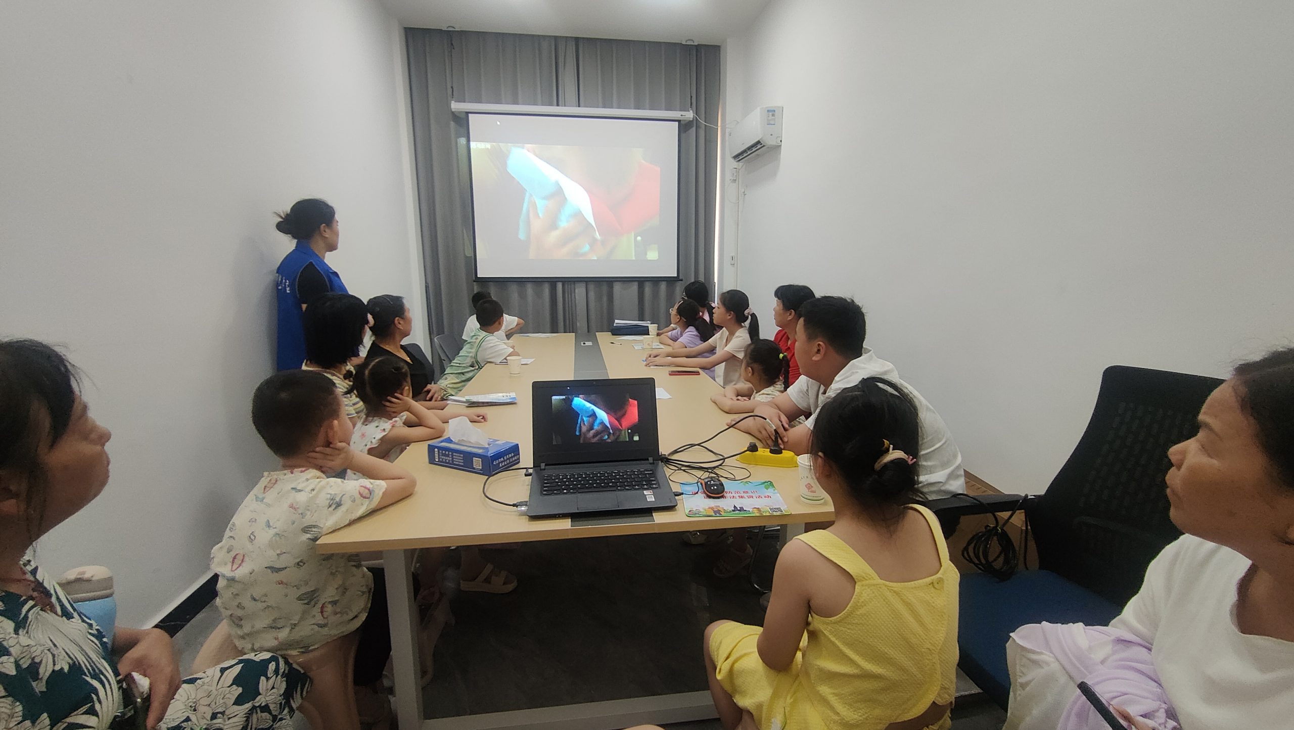 活动中,志愿者首先给孩子们展示喜、怒 、哀、乐、忧等情绪,激发孩子们的兴趣;随后孩子们上台表演各种情绪,台下的孩子们通过认真观察举手说出自己的猜测,并用画笔画出他们的表情,让孩子们在游戏互动中了解各种各样的情绪,进而学会健康地表达和处理自己的情绪。活动最后,为儿童播放电影《冲出亚马逊》。