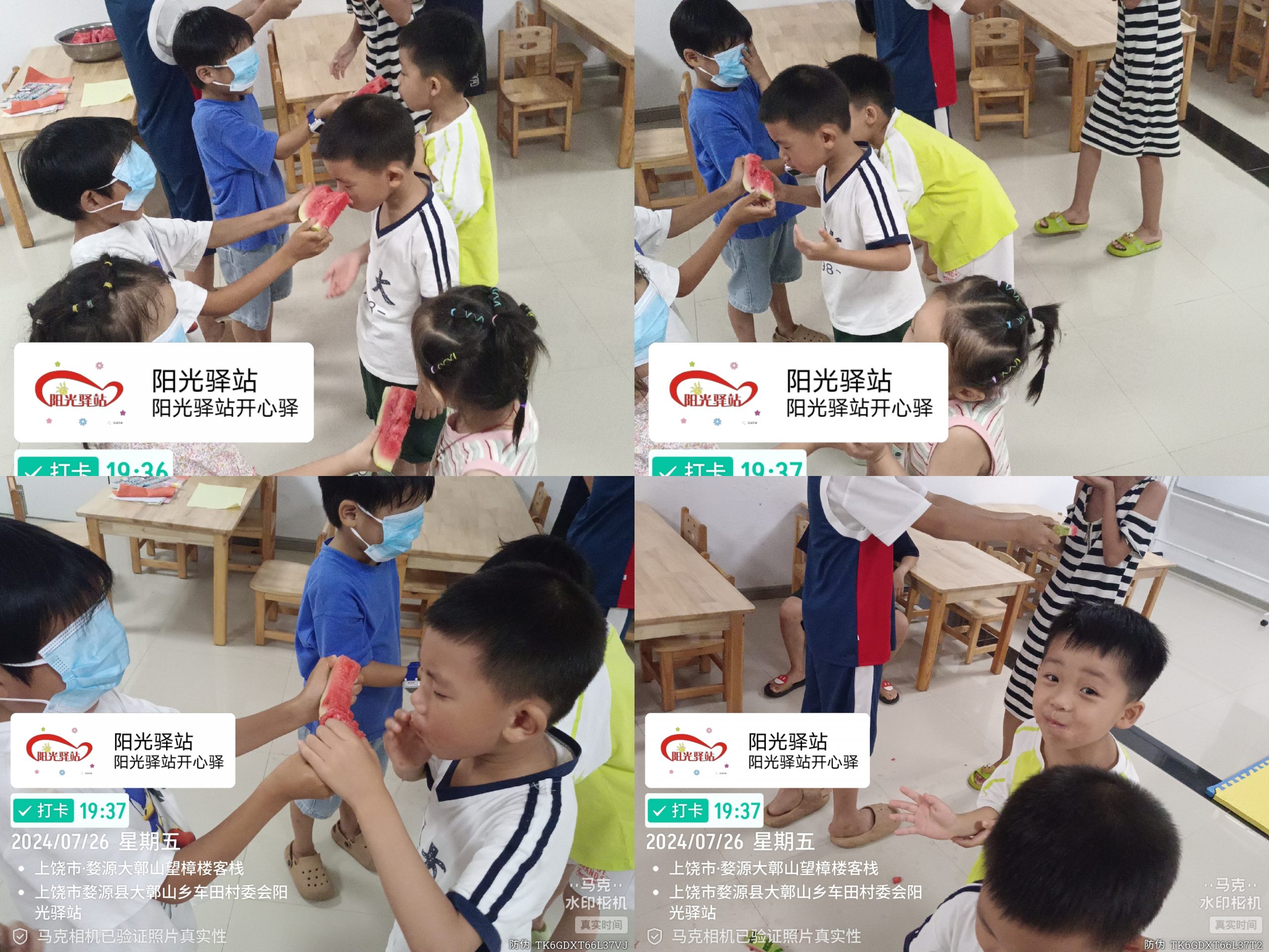 在炎炎夏日的热情拥抱中,婺源县大鄣山乡车田村的阳光驿站迎来了一场别开生面的“清凉一夏,快乐暑假”主题活动。这片被绿意环绕、溪水潺潺的宁静之地,瞬间化身为孩子们的欢乐天堂,让夏日的炎热无处遁形,只留下欢声笑语和满满的幸福回忆。 主题活动一:西瓜投喂,甜蜜启航 活动在一片片清凉解暑的西瓜中甜蜜启航。阳光驿站的工作人员早早地准备好了新鲜多汁的西瓜,切成方便手持的小块,整齐地摆放在长桌上。孩子们兴奋地排起队,手持小勺,仿佛在进行一场“西瓜盛宴”。每一口都是对夏日最直接的致敬,清甜的汁水在口腔中绽放,瞬间驱散了所有的燥热与疲惫。家长们也参与其中,与孩子们共享这份夏日的清凉与甜蜜,场面温馨而欢乐。