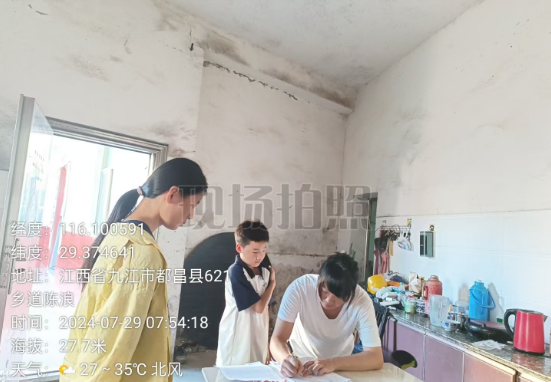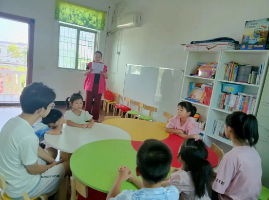 阳光驿站的工作人员协同志愿者进行家访宣传防溺水知识,让孩子们暑期不要去水边玩水。