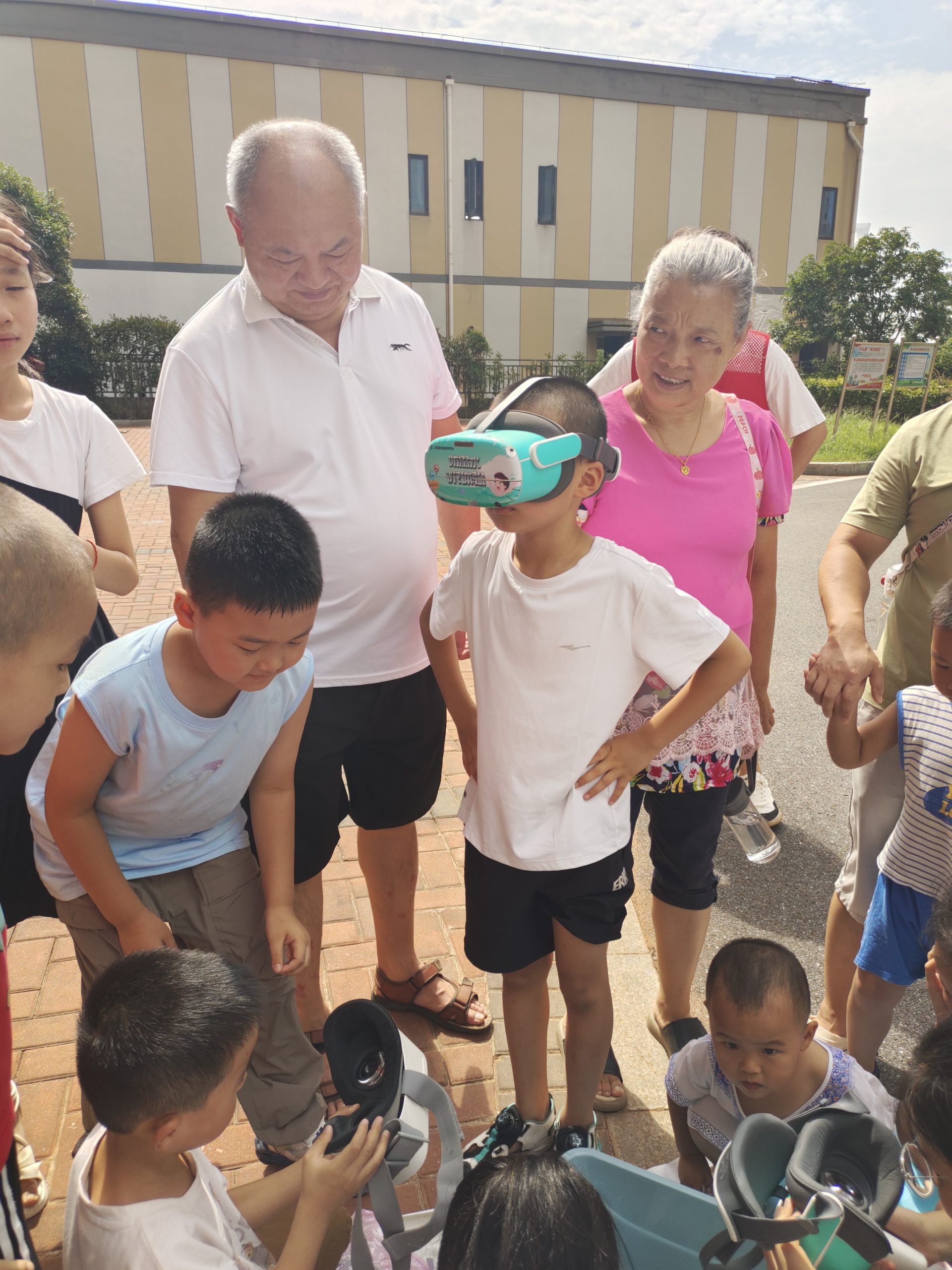 为了让孩子们更好地掌握自救技能,活动还特别设置了模拟溺水场景,王老师现场演示如何使用救生圈、救生衣等,并指导孩子们进行心肺复苏等急救技能的初步学习。更有VR眼镜,孩子们可以通过3D的溺水视频感受落水场景,在亲身体验中,加深了对安全知识的理解。