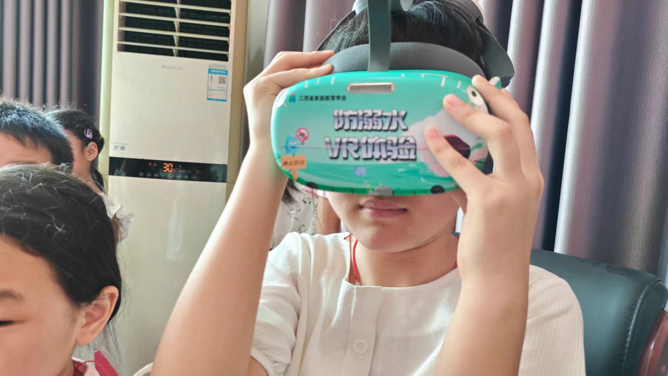 活动中,江西省家庭教育学会的儿童安全教育讲师王珍妮、魏燕芳老师以沉浸式体验为特色,在课堂中加入VR眼镜、防溺水救援工具、心肺复苏道具、水中憋气体验等内容,让儿童在玩乐中学习,将防溺水知识通过游戏、互动等方式真正做到入脑入心。
