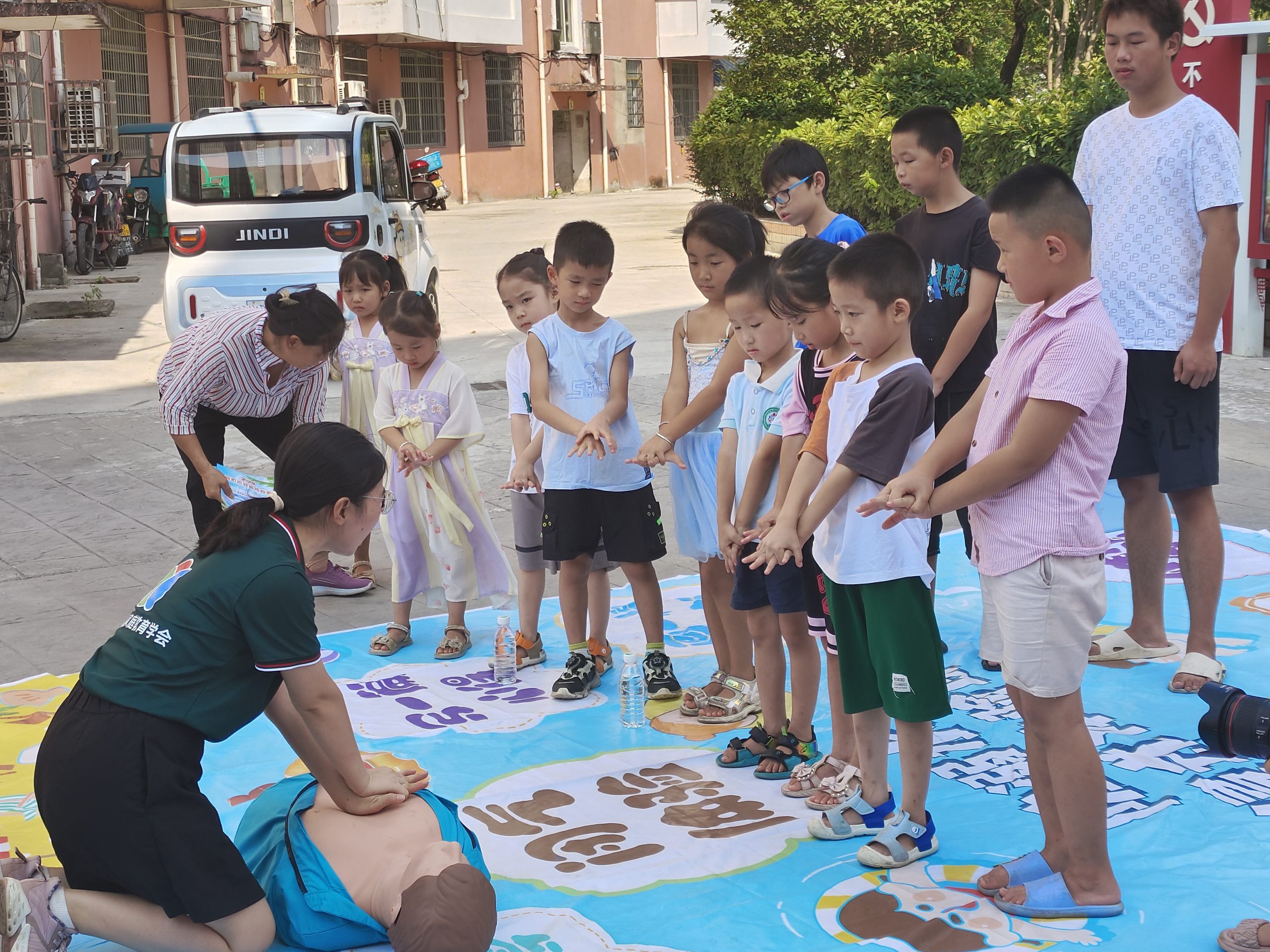 在均桥镇渊明社区广场,江西省家庭教育学会儿童安全教育讲师王珍妮老师以“闭气挑战”入题,随着一声“开始”的口令,孩子们纷纷弯腰俯身把脸伸进盆子里进行憋气体验,亲身经历溺水时口鼻不能呼吸的窒息感,切实感受溺水带来的危害。“在水里憋气太难受了,我只能坚持7秒钟,如果在外面掉水里,真的太危险了。”小学生刘梓琨体验之后,心有余悸。