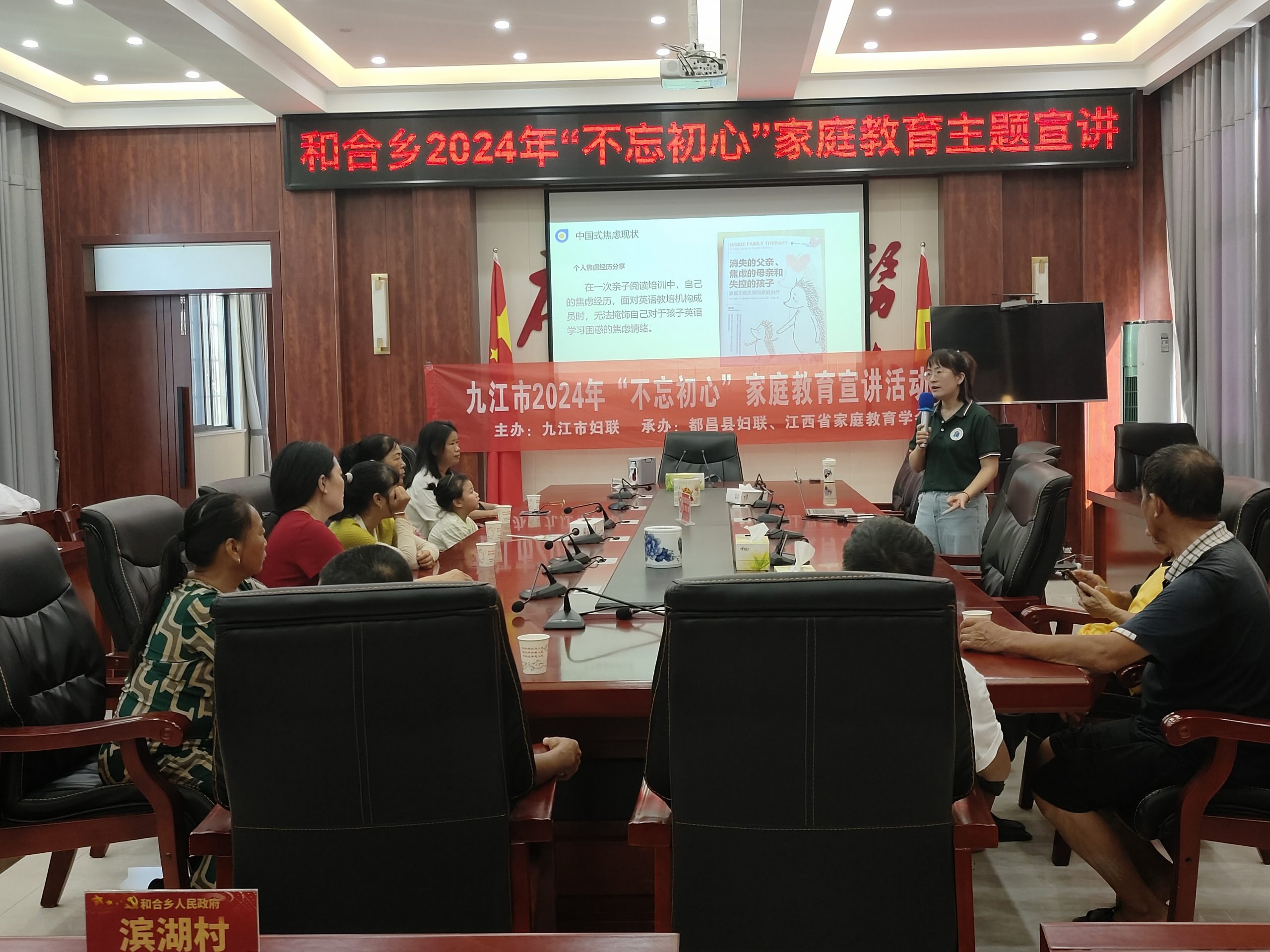 为了进一步提升家长对家庭教育的重视,引导家长树立正确的家庭教育观念,促进家庭和谐与孩子健康成长,由九江市妇联主办的2024“不忘初心”家庭教育宣讲走进都昌县芗溪乡、中馆镇等多个乡镇。