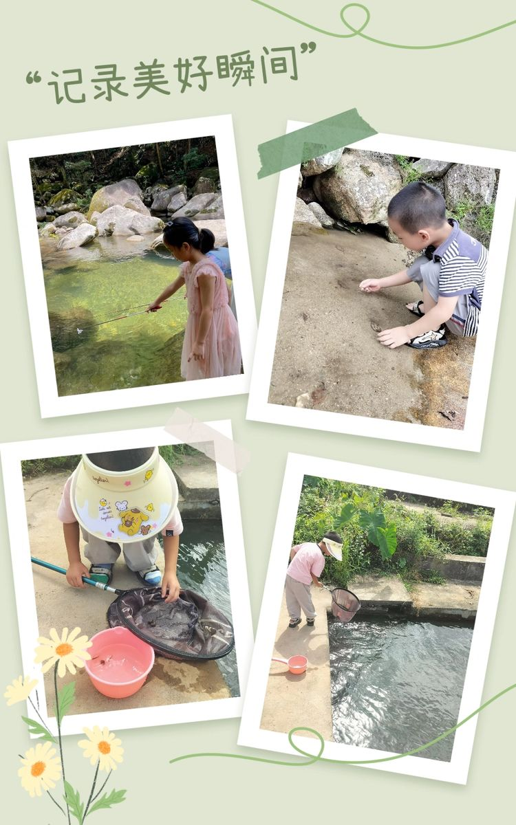 “小鱼小鱼,快到我的手里来吧!”小朋友们兴奋地喊道,捕鱼活动在和谐而热烈的气氛中进行。想捉住滑溜溜的小鱼,力度要适中,手劲轻了,捉不稳,手劲重了,小鱼从指缝中溜走。看着成群结队的小鱼,小朋友们斗志昂扬,挽起裤腿,淌进水里,与鱼儿斗智斗勇,现场欢声一片。
