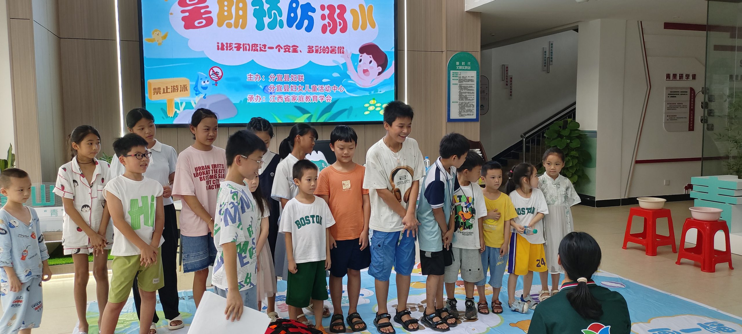 江西省家庭教育学会中级社工、儿童安全教育讲师王珍妮老师在活动开始为孩子们讲解防溺水知识,包括溺水的危害性、预防措施、自救互救技巧等。通过生动的案例讲解和互动问答,让孩子们深刻认识到防溺水的重要性,并掌握基本的自救互救技能。