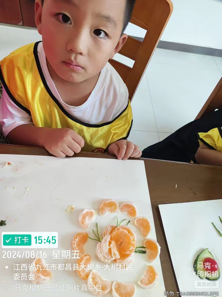 “水果拼拼乐,创意无极限”。在这个八月暑期,一场充满趣味与创意的水果拼拼乐活动火热来袭!色彩斑斓的水果在孩子们的手中变成了一幅幅精美的艺术品。活动现场,各种新鲜的水果琳琅满目,散发着诱人的香气。孩子们,发挥无限的想象力,用巧妙的双手将水果切割、组合,拼出独一无二的图案。水果拼拼乐不仅是一场充满乐趣的游戏,更是一次增进亲子关系、培养团队合作精神的好机会。我们的孩子用水果拼出精彩,拼出快乐!