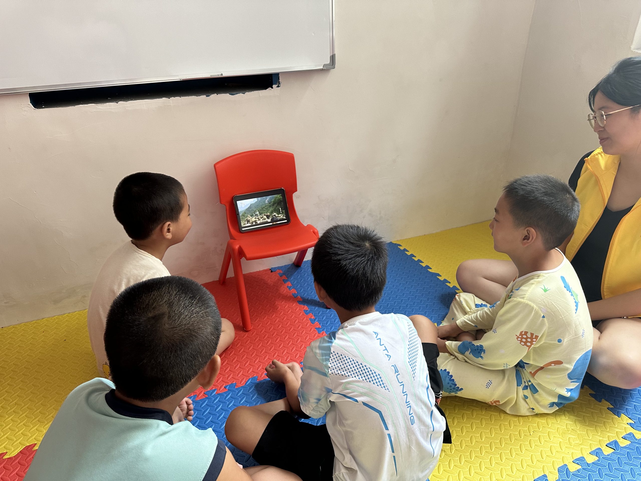 活动的最后,阳光驿站志愿者给孩子们播放了电影《牛郎织女》。
