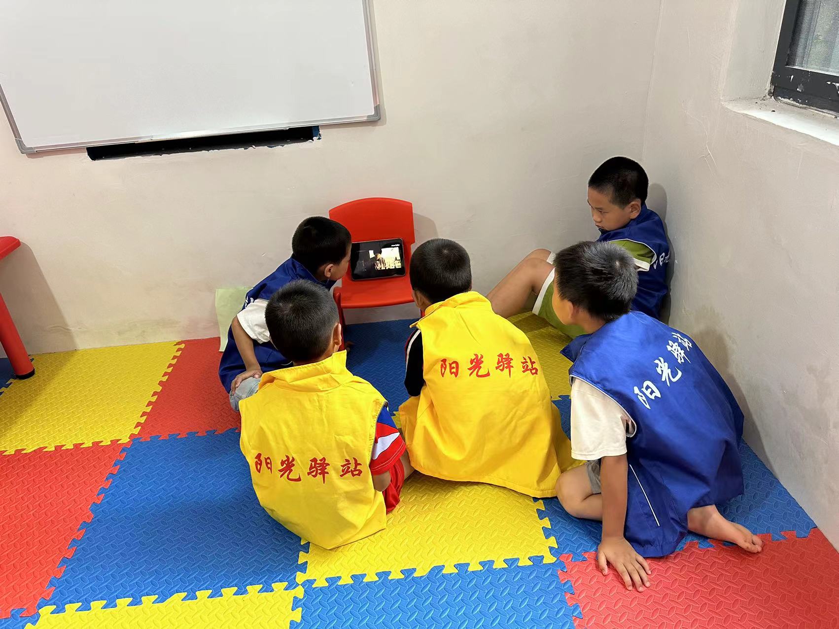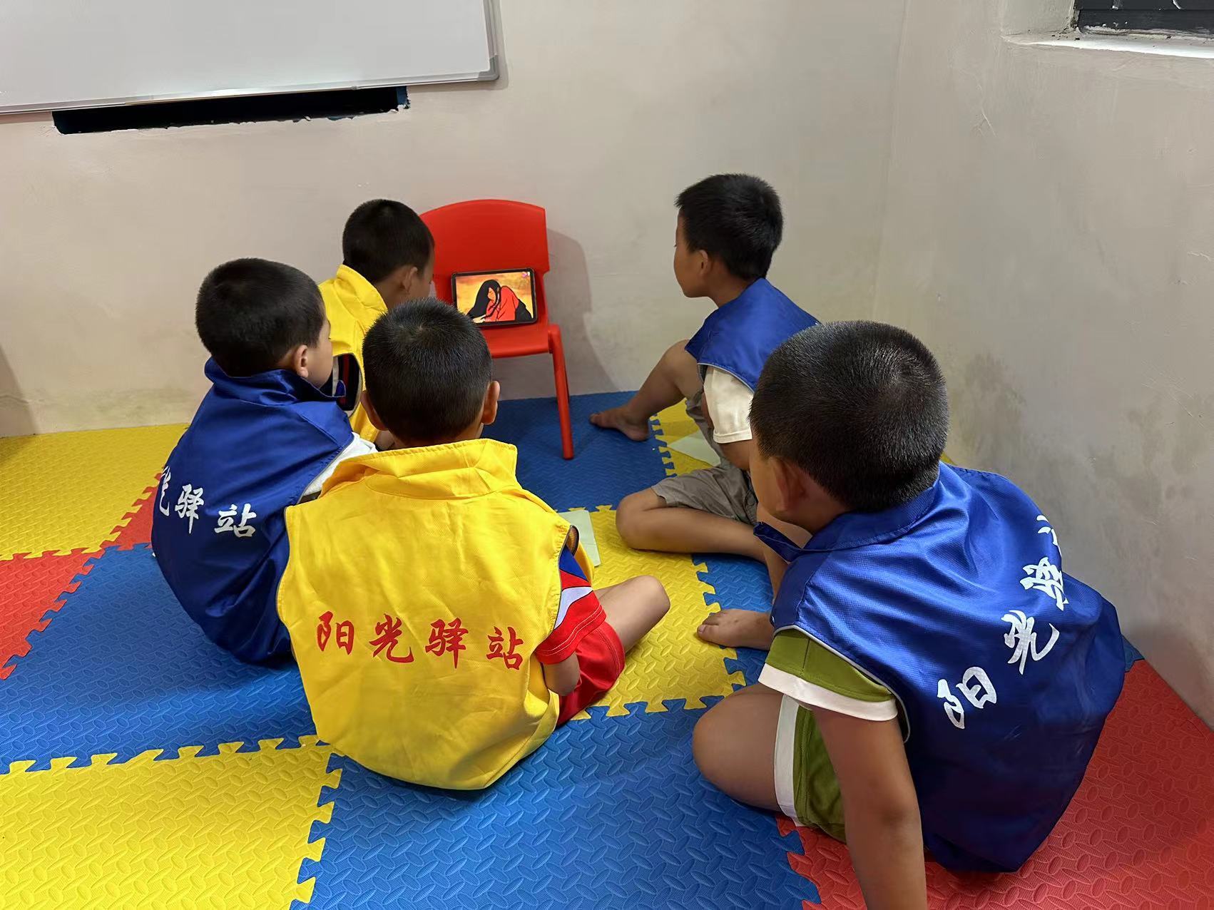 随后,阳光驿站志愿者为孩子们播放了电影《举起手来》