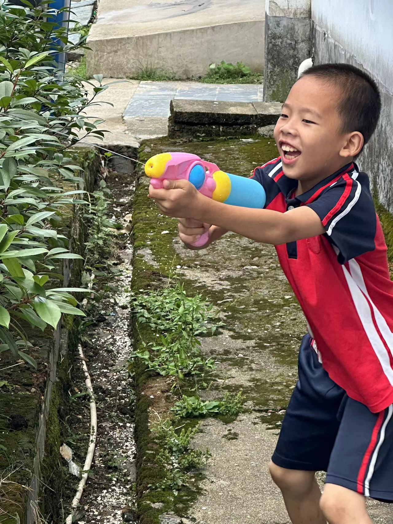 今天的活动是!水枪大作战!活动的开始,阳光驿站志愿者为每个小朋友都准备了一把水枪,做好热身运动。