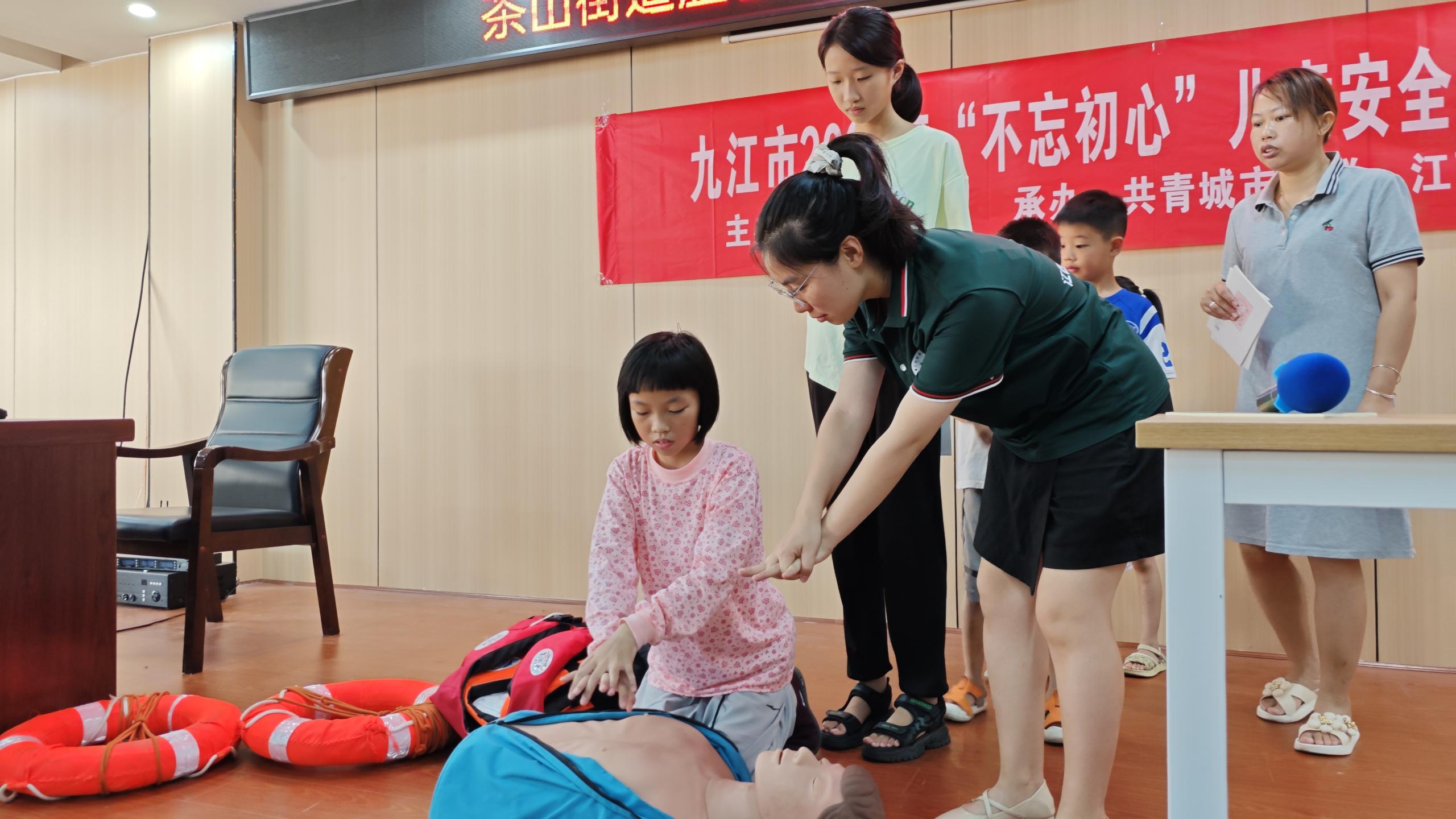 紧接着,活动进入了实操环节。在王老师的指导下,孩子们亲身体验了如何正确穿戴救生衣、使用救生圈以及如何对溺水的人进行心肺复苏和人工呼吸等方法。王老师耐心地纠正孩子们的错误动作,鼓励他们勇于尝试、敢于挑战自我。同时,通过模拟溺水救援的演练,让孩子们在实战中感受团队协作的力量和救援技能的重要性。