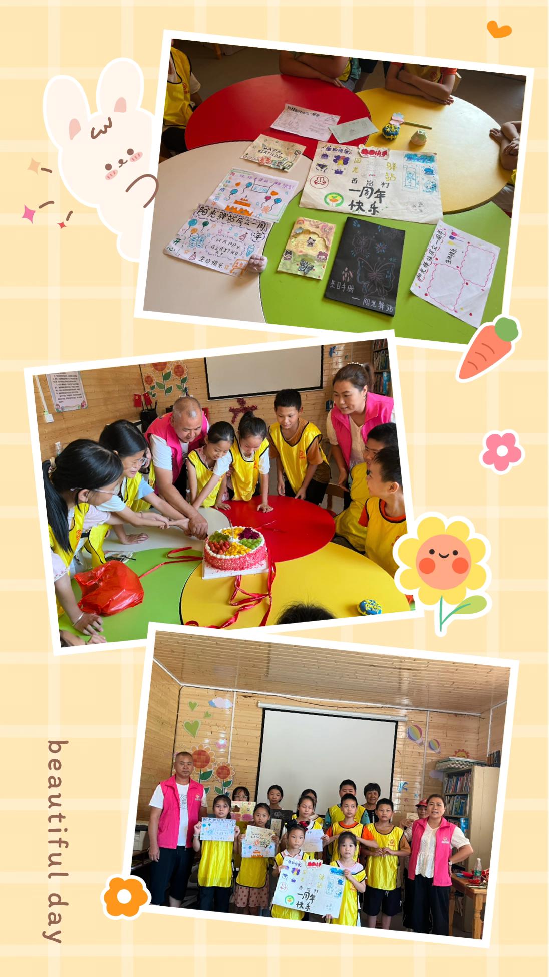 最后庆祝阳光驿站成立一周年,展望未来,阳光驿站将继续秉承“关爱孩子 护童成长”的宗旨不断提升。我们相信,在大家的共同努力下,阳光驿站将为更多孩子发出爱的力量。
