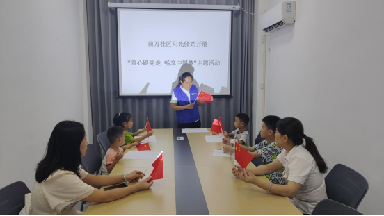 为弘扬伟大建党精神,引导广大少年儿童铭记党的关怀,前万社区阳光驿站组织巾帼志愿者给孩子们讲述中国共产党的由来,带领孩子们唱红歌,讲述红船故事,还鼓励孩子们画出自己心中的英雄模样、党旗国旗。通过本次活动,孩子们不仅学到了知识,更收获了心灵的洗礼和成长的力量。
