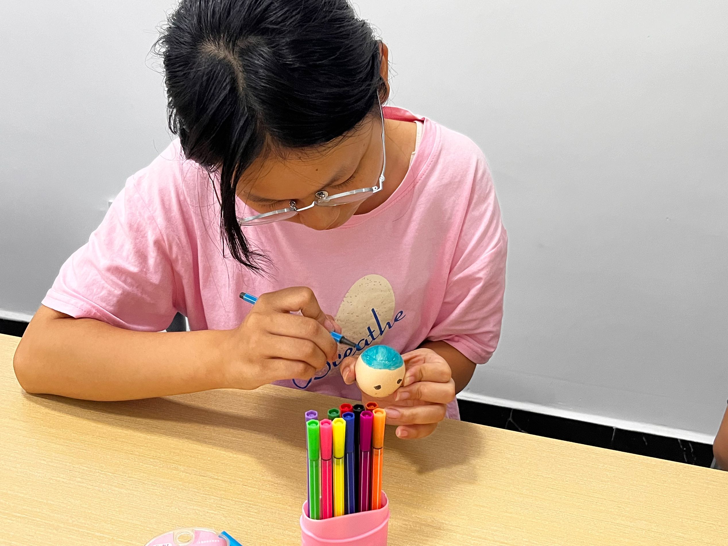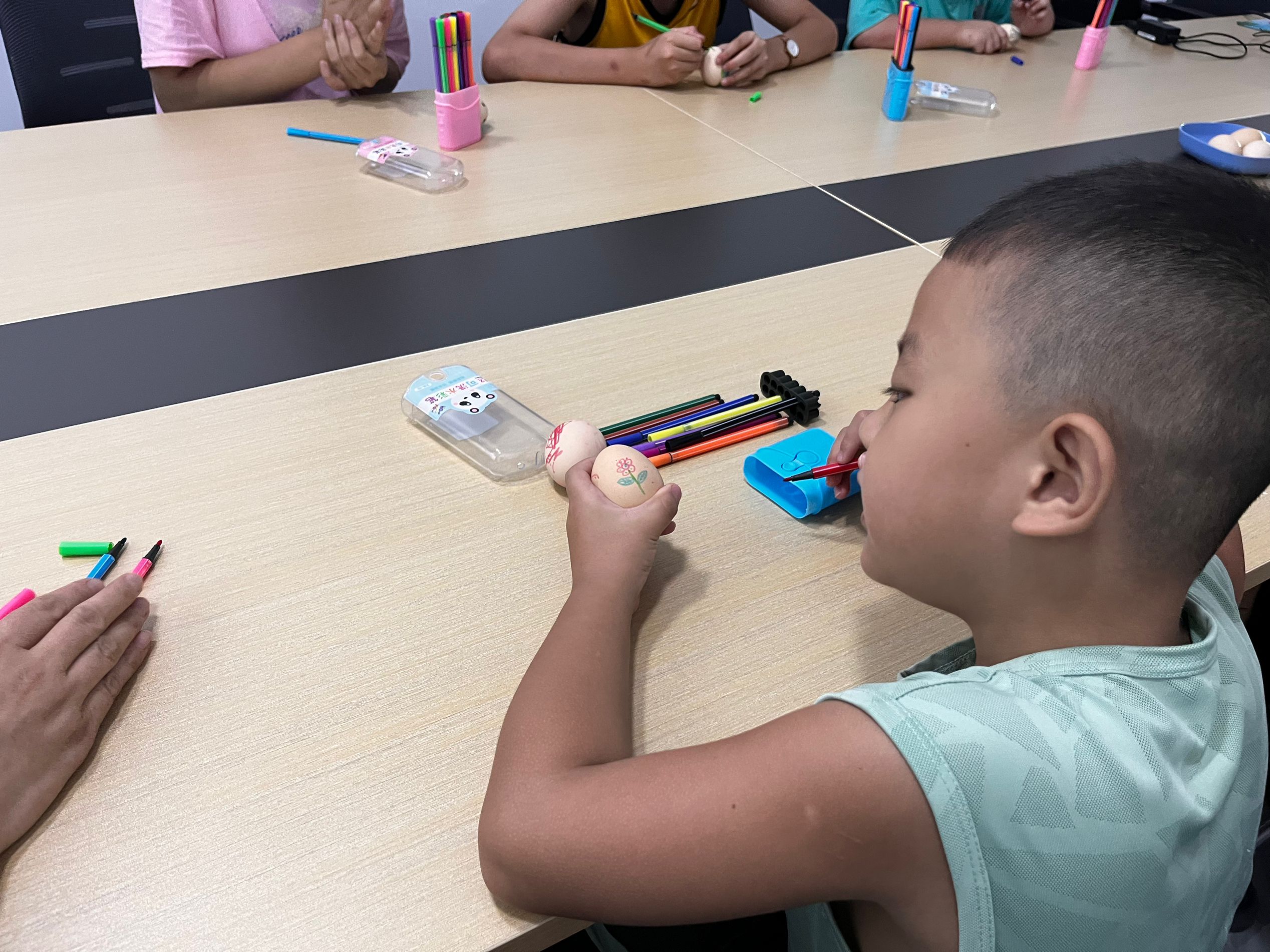 活动中,社区工作人员提前准备了鸡蛋、水彩笔等材料,听完志愿者老师的讲解后,小朋友们挥洒童真,表达快乐,发挥自己的想象力,用不同构图的画面、别出心裁的创意,在鸡蛋上画出来各种丰富的表情。不会的小朋友举手问老师,或者向小伙伴请教,忙的不亦乐乎,孩子们在快乐中体会到了绘画的魅力。