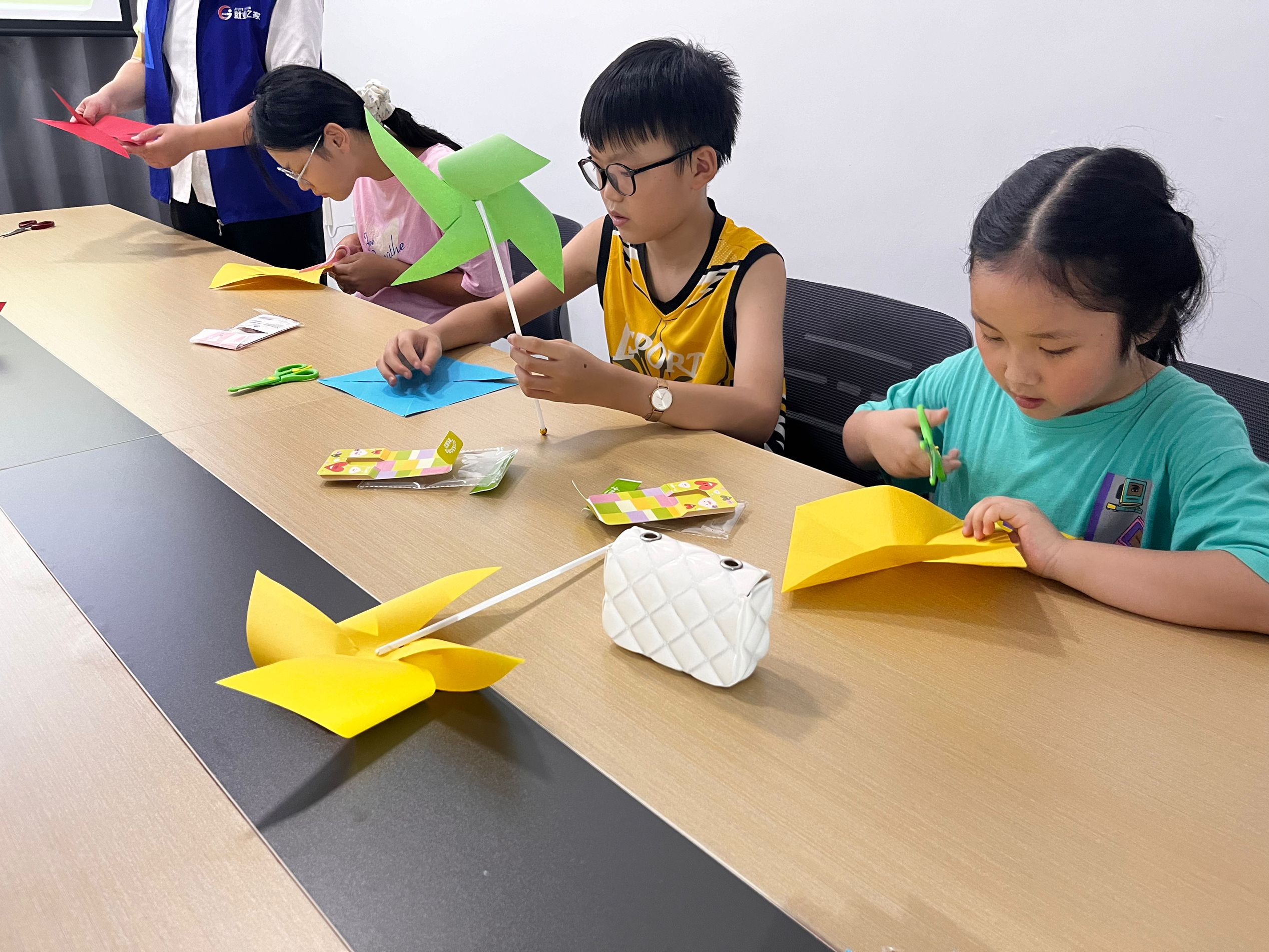 社区工作人员将制作风车的手工材料分发到每个小朋友手中,并向他们讲解了制作风车的主要步骤以及在制作过程中的注意事项。随后孩子们在工作人员的引导下开始动手制作,不一会儿一个个色彩斑斓、充满童趣的风车便完成了。孩子们高兴地转动着自己的风车,脸上洋溢出灿烂的微笑。