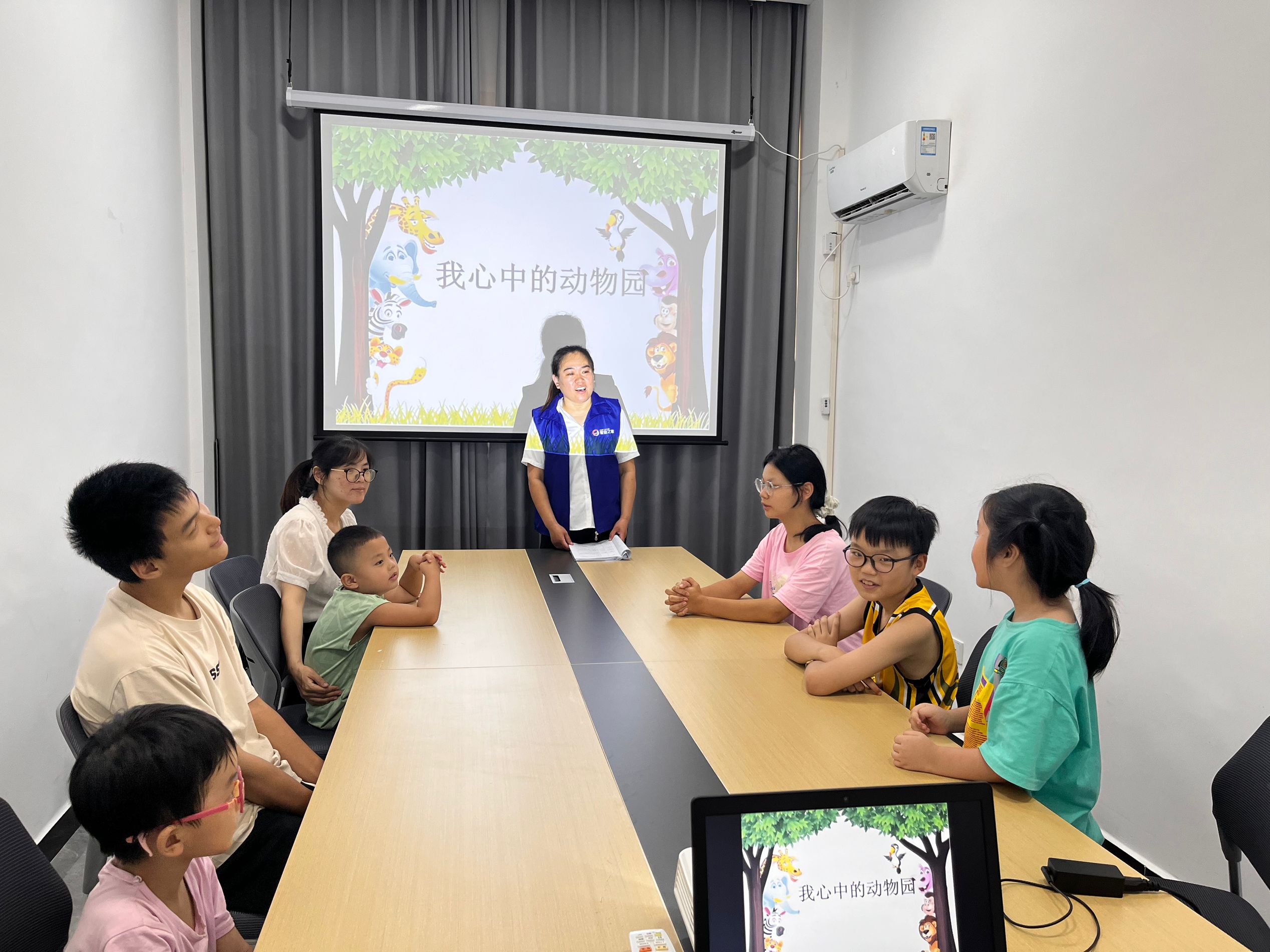 为提高青少年的反应能力、观察力、记忆力和语言表达能力,同时增强他们的团队协作能力,前万社区阳光驿站开展了“我心中的动物园”主题活动。活动室里,传来孩子们有节奏的律动,“动物园里有什么?”“动物里有老虎”、“动物园里有狮子”、“动物园里有长颈鹿”。孩子们围坐在一起,工作人员选任意孩子为起点,有节奏地拍掌问“动物园里有什么?”孩子们依次一边拍掌一边回答,现场热闹非凡。孩子们需要快速地说出动物的名字,且不能重复,这对他们的反应能力和知识储备都是一个不小的考验。